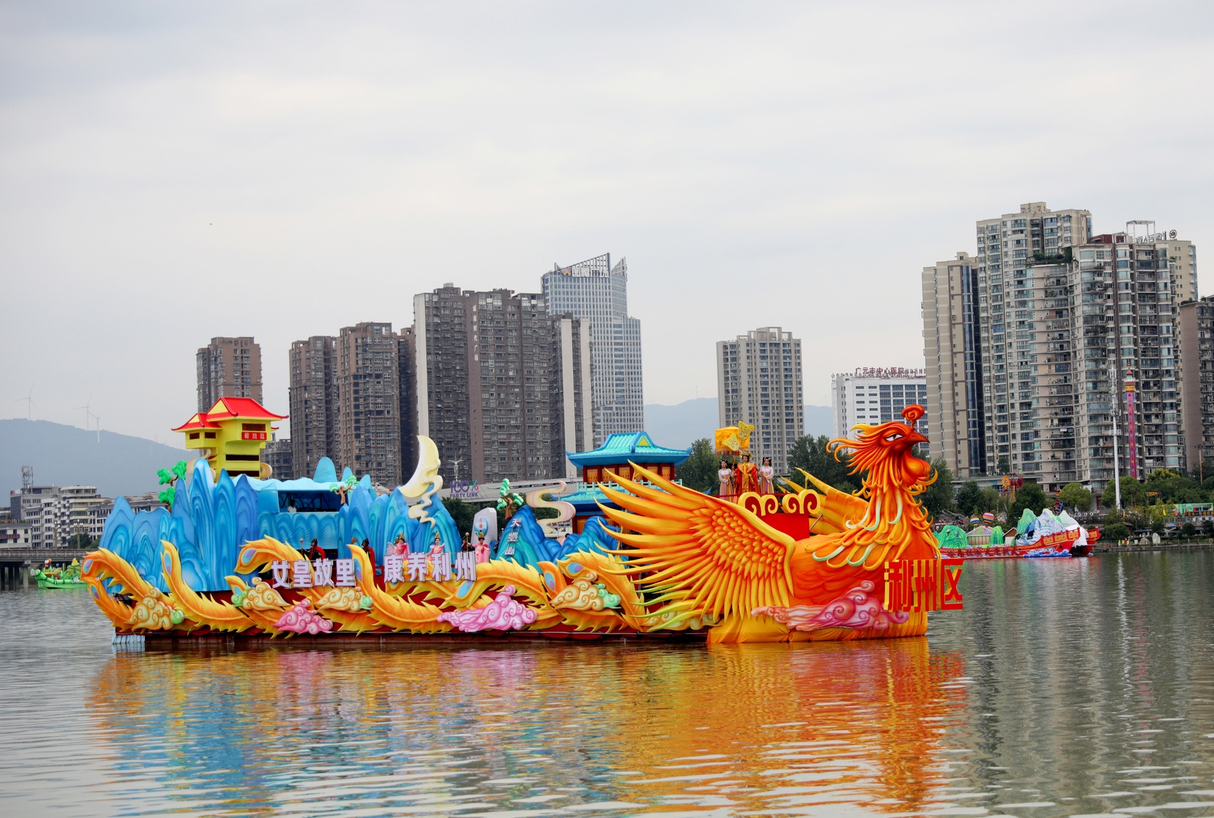 女儿节开幕式上的彩船巡游。广元观察 高志农 摄