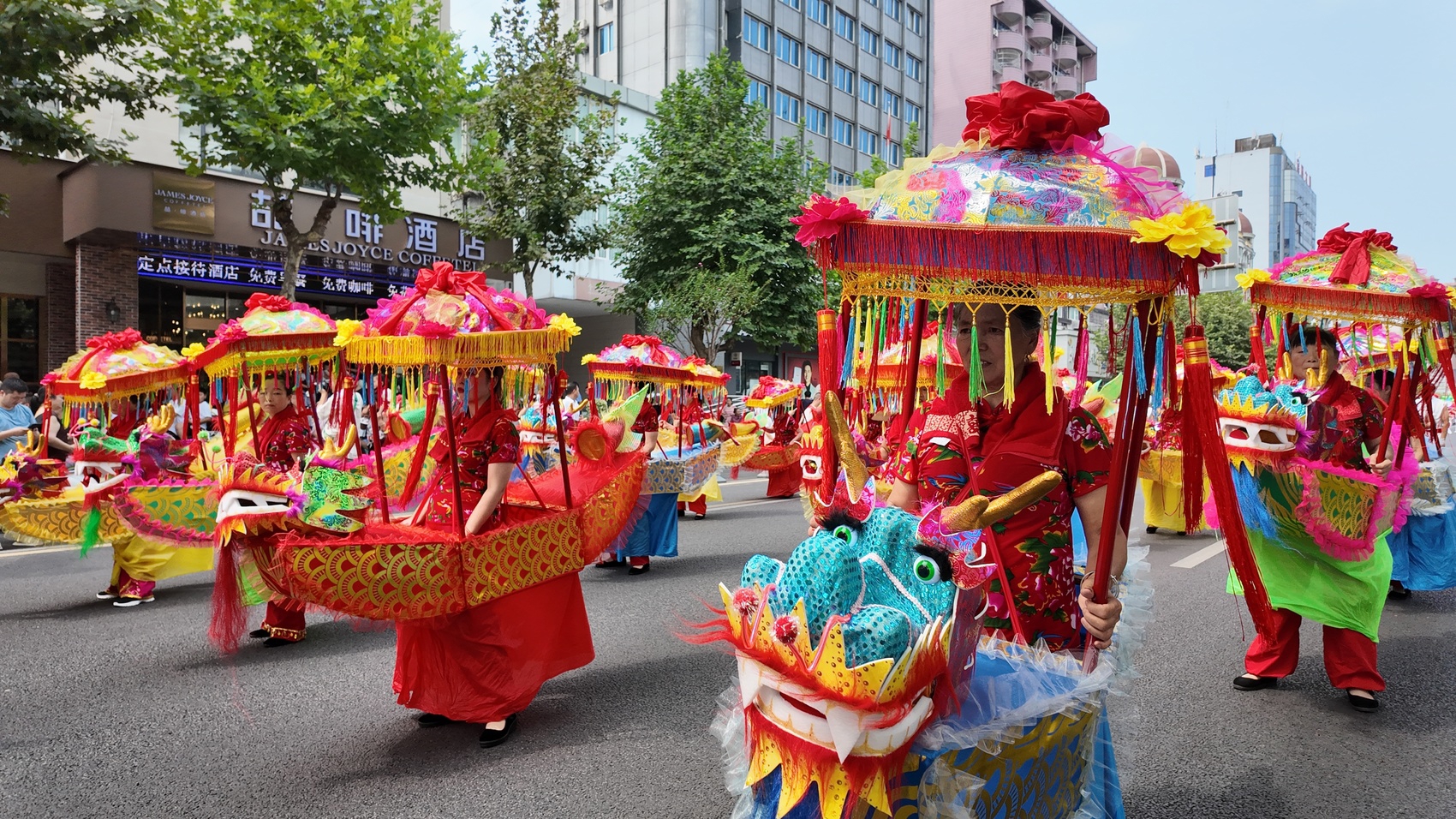 9月1日女儿节当天群众巡游上的民俗表演。张敏 摄