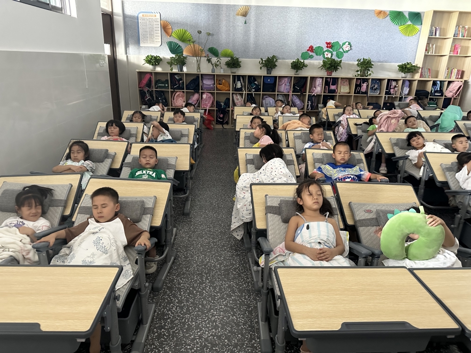 “良好的午睡习惯对孩子的健康成长至关重要。我们学校倡导一年四季都要午睡,午休躺睡使得孩子们的午睡质量明显提高,下午也更有精力继续课程。”曾老师表示,为了确保学生午休质量,学校安排了一个小时的完整午休时段,班主任老师每日中午都会陪伴在教室里,引导学生安静就寝。得益于教室内的空调设施,无论是冬日保暖还是夏日避暑,都能确保学生们在舒适的环境中得到充分休息,既不影响学习效率,又促进了学生身心健康。
