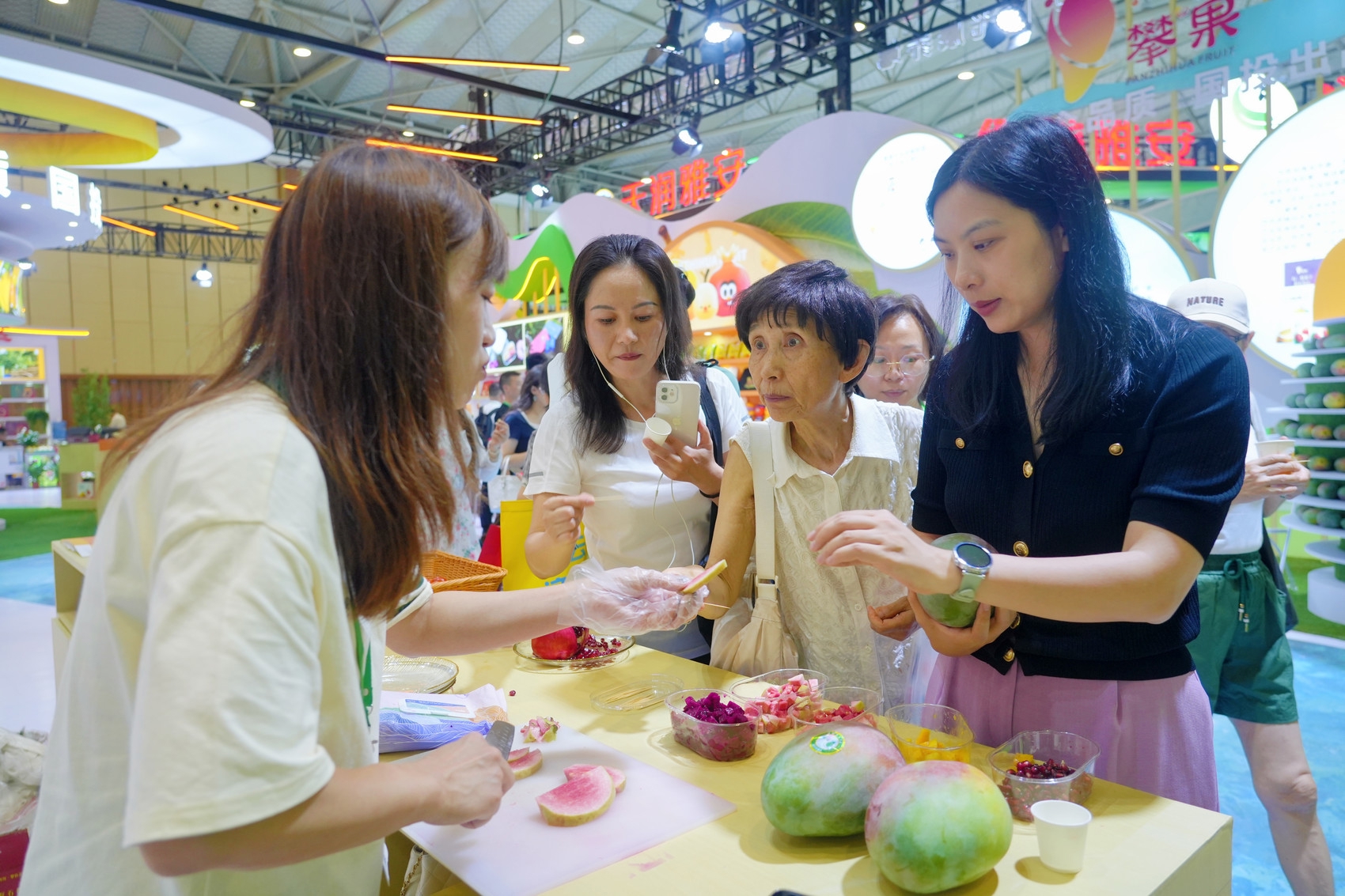 “芒果是什么品种,怎么卖?”“两个品种的石榴口感有什么区别?”……9月21日,恰逢周末,第十届四川农业博览会迎来客流高峰,攀枝花展馆内“攀果”展区询问声此起彼伏,凭借“颜值出众、口味绝佳”的绝对优势,攀枝花优质水果在展示展销现场惊艳“出圈”,吸引大批客商和消费者,掀起一场视觉与味觉的双重盛宴。