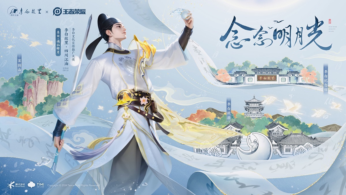 据《王者荣耀》相关负责人表示,本次推出李白文创皮肤,旨在通过《王者荣耀》的IP影响力,以游戏为媒介、数字化内容为抓手,讲述李白的人生故事,复现出一版贴合史实的李白形象,让传统文化在“光影”中“活”起来,助力江油“李白故里”这一品牌IP在年轻群体中的宣传推广,持续推动李白文化的创造性转化和创新性发展。