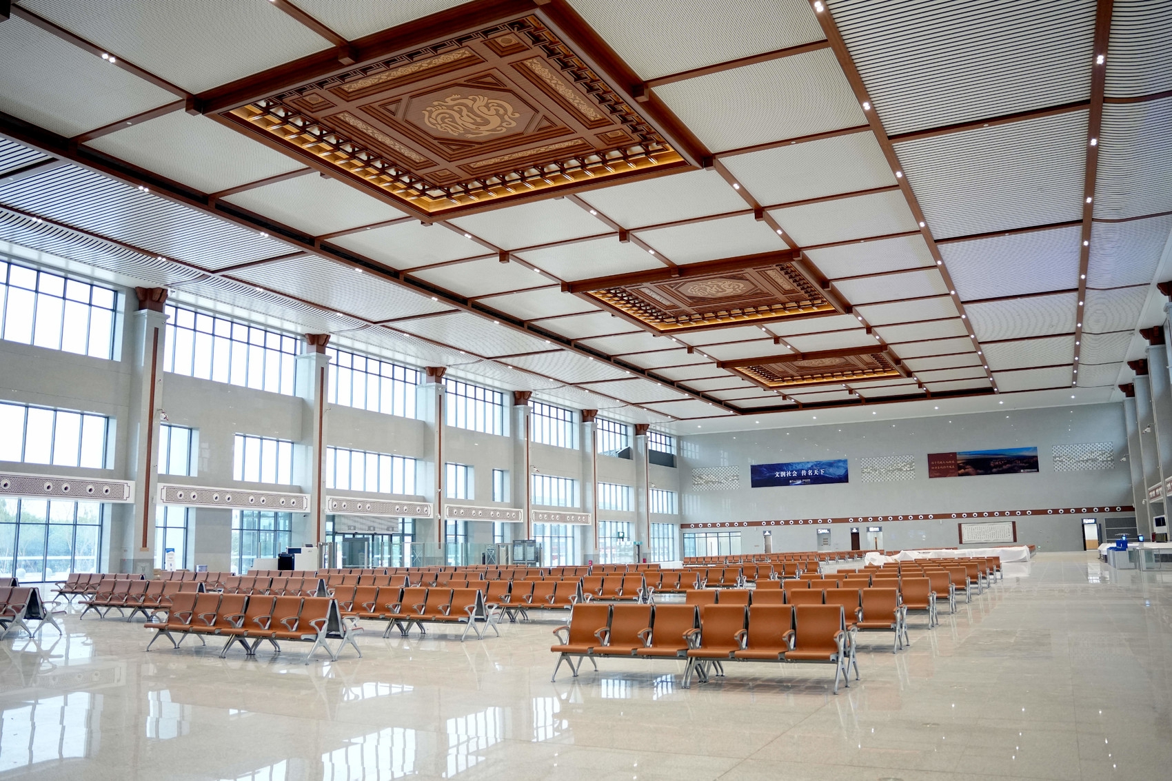 位于宜宾市南溪区,为线侧平式站房,地下一层、地上两层,车站总建筑面积5999平方米,站房最高聚集人数为600人。室内装饰以南溪古城古建为设计依托,挖掘南溪古建特色,结合古棕色将传统建筑设计语言与现代风格相融合,参考古建中“榑”屋面构造的方式,以藻井为切入点,让传统南溪焕发新的生命力。