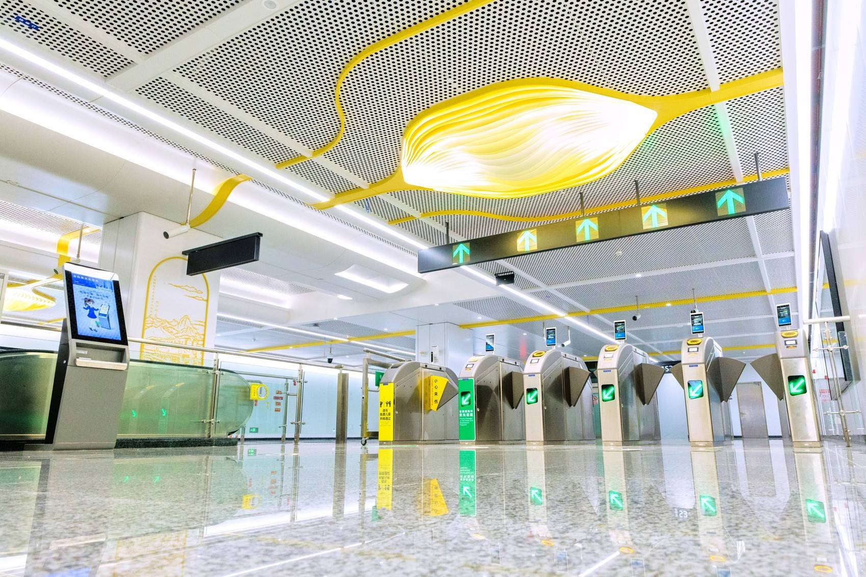 柠檬黄与灰白为主色调的站内大厅宽敞明亮,柠檬造型的顶灯清新别致,车站柱面上的安岳石刻、铜车马、三贤故里等文化元素尽显文化底蕴……从资阳临空站开始,轨道交通资阳线在资阳境内的5座站点,内部装饰装修皆融入了极具代表性的资阳元素,将成为展示资阳文化特色的一张名片。
