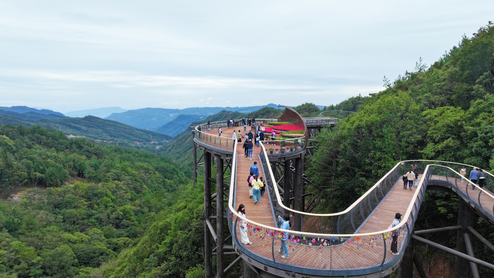 国庆假期,月亮坪康养旅游度假区树冠云廊景点正式对外开放,人们穿梭群山之上抬头可望巴山之月,低头可俯瞰林海涛涛。月亮坪精心准备了各种趣味活动,有充满浪漫氛围的“月亮之下520”主题晚会,有五彩斑斓的花卉展览,以及尊享住宿附赠的古装体验等特色活动,为游客朋友们献上了难忘的假期体验。