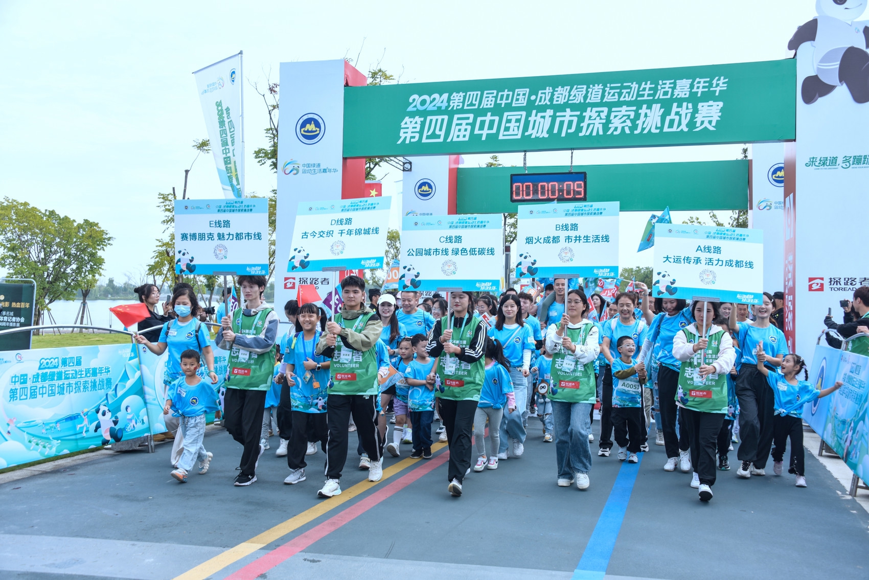 10月1日上午,随着一阵笛声响起,3000余名运动员在欢呼声中起跑,拉开了中国·成都绿道生活嘉年华2024第四届中国城市探索挑战赛的序幕。晚上,东安湖一场三馆及火炬塔点亮,火炬塔广场的大舞台,专业歌手和市民游客一同歌唱祝福祖国。