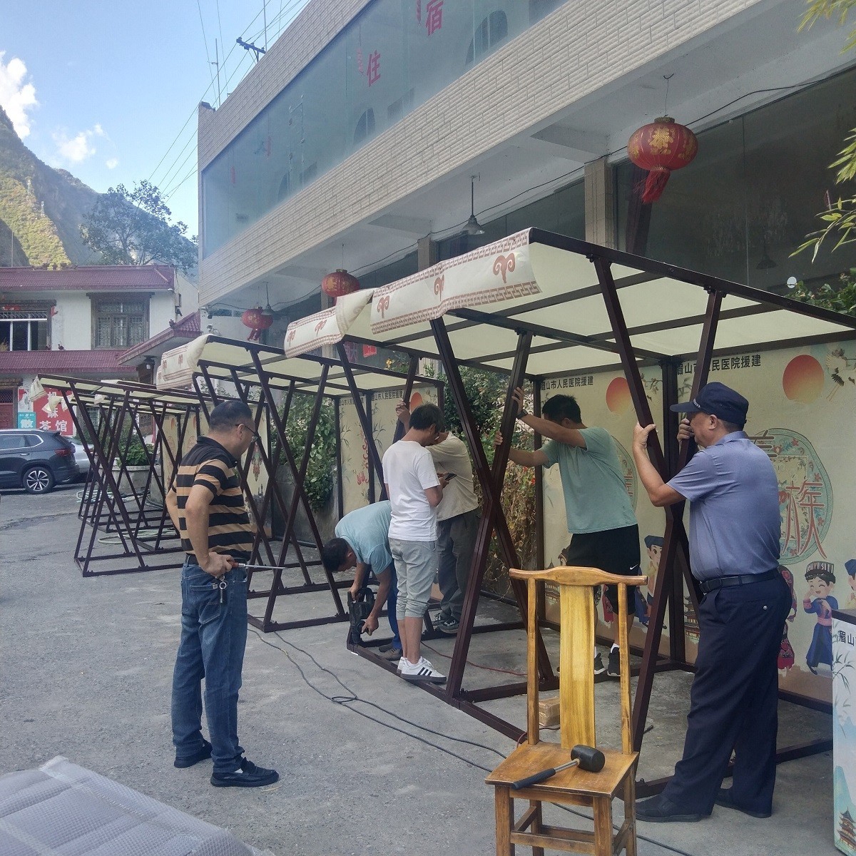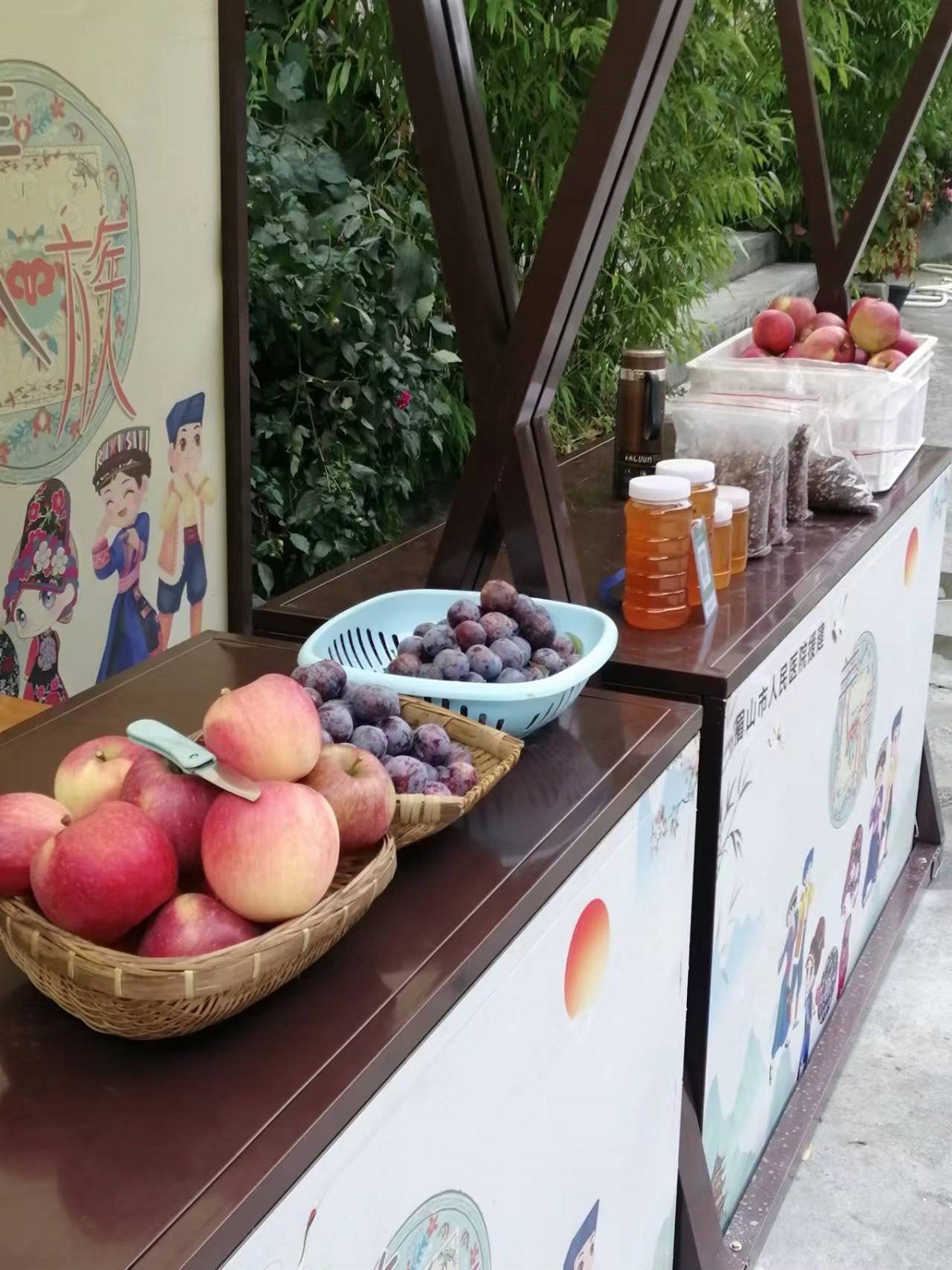 国庆期间,眉山市人民医院援建茂县叠溪镇大店村和拴马村的16个农产品销售摊位成功“出摊”。