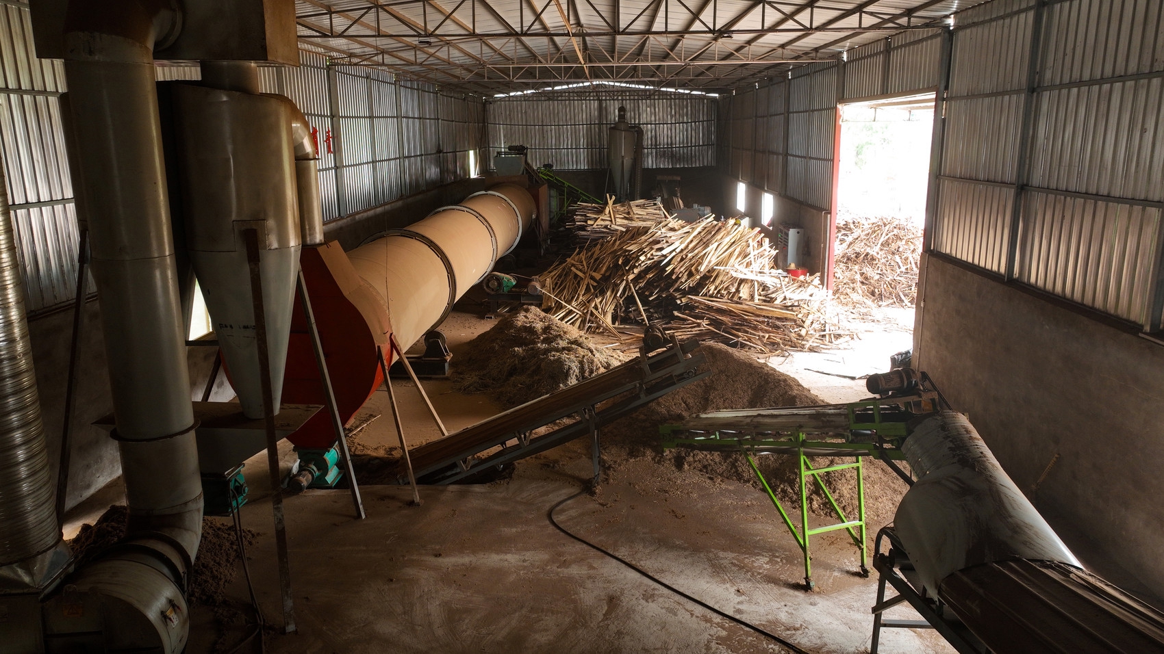 走进该公司生产车间,一堆堆废弃木屑、树皮、木材、边角料等原材料堆满空地,工人师傅们井然有序地操作粉碎机、烘干机、制粒机等机械设备,加工生物质能源。