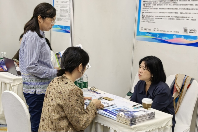 成都大学电子信息工程专业2025届本科生吕燕倩在校方集体组织下来到招聘会现场,“浙江是一个充满机会的地方,希望自己能前往发展。”她表示自己已经明确了意向岗位,此次有目的性地面谈了多家企业,最终投出了4份简历。