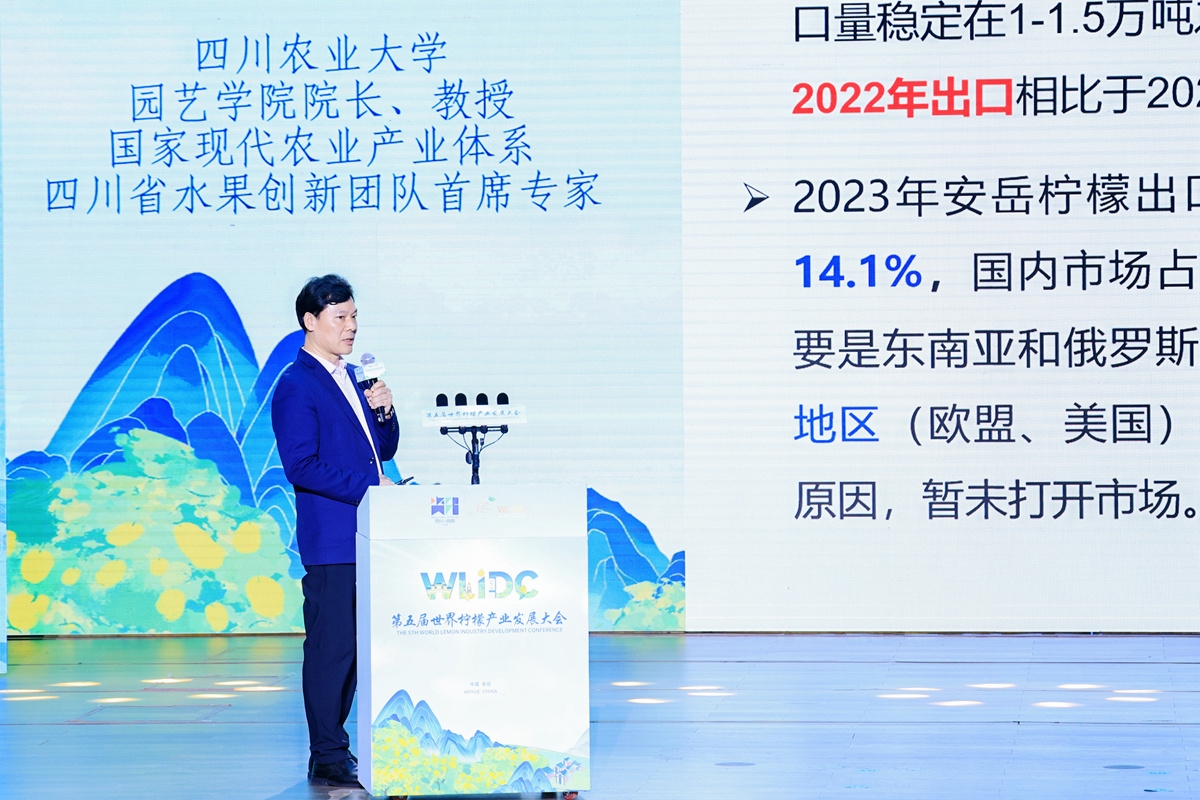 这是10月18日在资阳安岳举行的第五届世界柠檬产业发展大会上的一幕。当天来自世界各国各地区的300余位行业专家、研究机构、协会组织、企业及行业从业代表齐聚一堂,聚焦如何进一步擦亮安岳柠檬川果金字招牌建言献策、把脉开方。