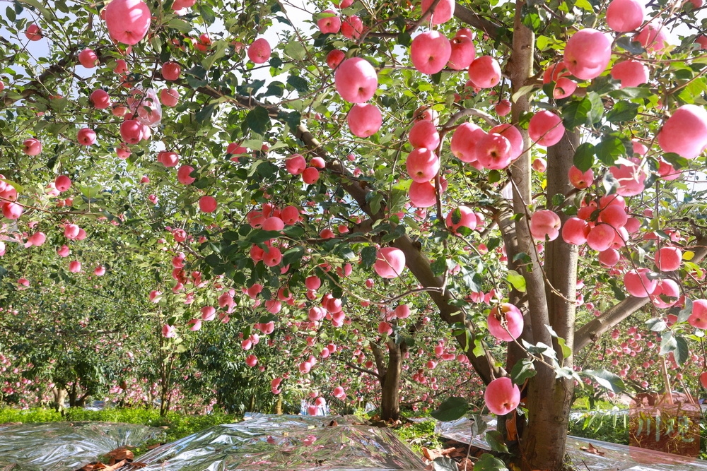 走进汉源苹果的代表产区——汉源县宜东镇新林村,海拔1600米左右的山坡披上了一抹抹红色,走进一看果园里挂满了红嘟嘟的苹果。新林村副主任陈正东介绍,今年整个新民村有5500亩苹果即将迎来丰收,其中红富士品种下的“红将军”已经上市售卖,“烟富8号”在11月也将迎来销售旺季。他自己种的20多亩苹果,因为品质过硬,卖相好看,还没有摘下就已经被外地老板“预定”,买完约有20万元。