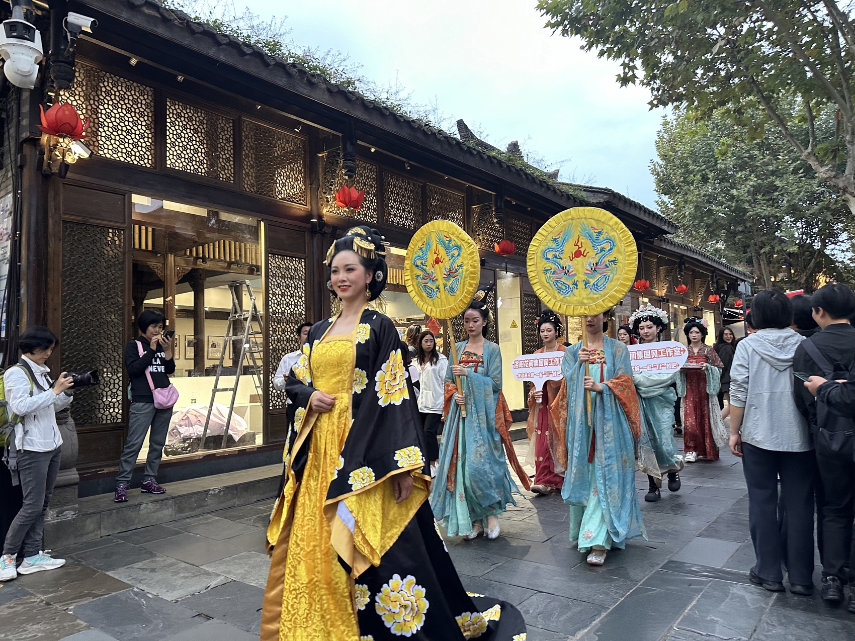 10月19日晚,武皇巡游、唐风歌舞、汉服cosplay真人秀在成都宽窄巷子轮番上演,精彩表演赢得阵阵掌声和欢呼,洛阳市老城区新文旅宣传推介活动拉开序幕。