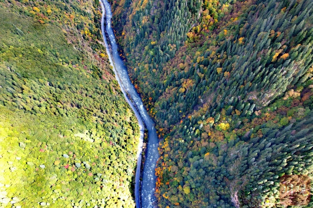 马尔康城市文旅推介官金初介绍,梭磨河大峡谷呈“V”字型,谷里石壁峻峭,植被丰茂,两岸的各类植物经风霜洗礼后,现姹紫嫣红,斑斓多姿。“春来采花,夏铺绿,秋染红叶,冬冰雪”,是梭磨河大峡谷的四季写照。100多年前,英国旅行家伊莎白就被梭磨河大峡谷惊艳,“它比美国落基山脉峡谷还要美。”