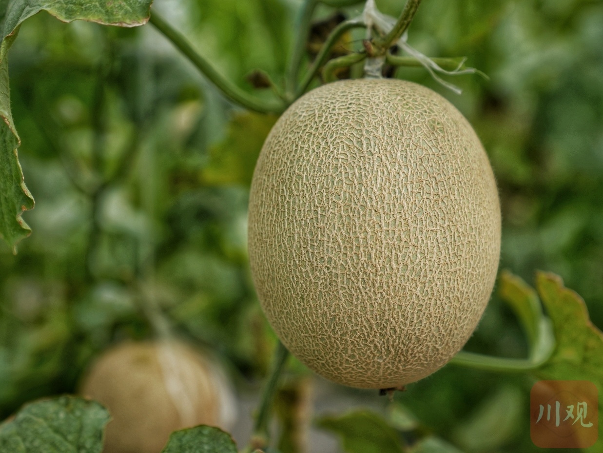 据了解,网纹瓜是近两年蜜瓜界的“新宠”,深受水果爱好者的喜爱。侯建向川观新闻记者介绍,该园区种植的网纹瓜品种是从山东引进的,2022年试种成功,一经上市便颇受好评,去年已扩种到了15个棚,总面积达60多亩。