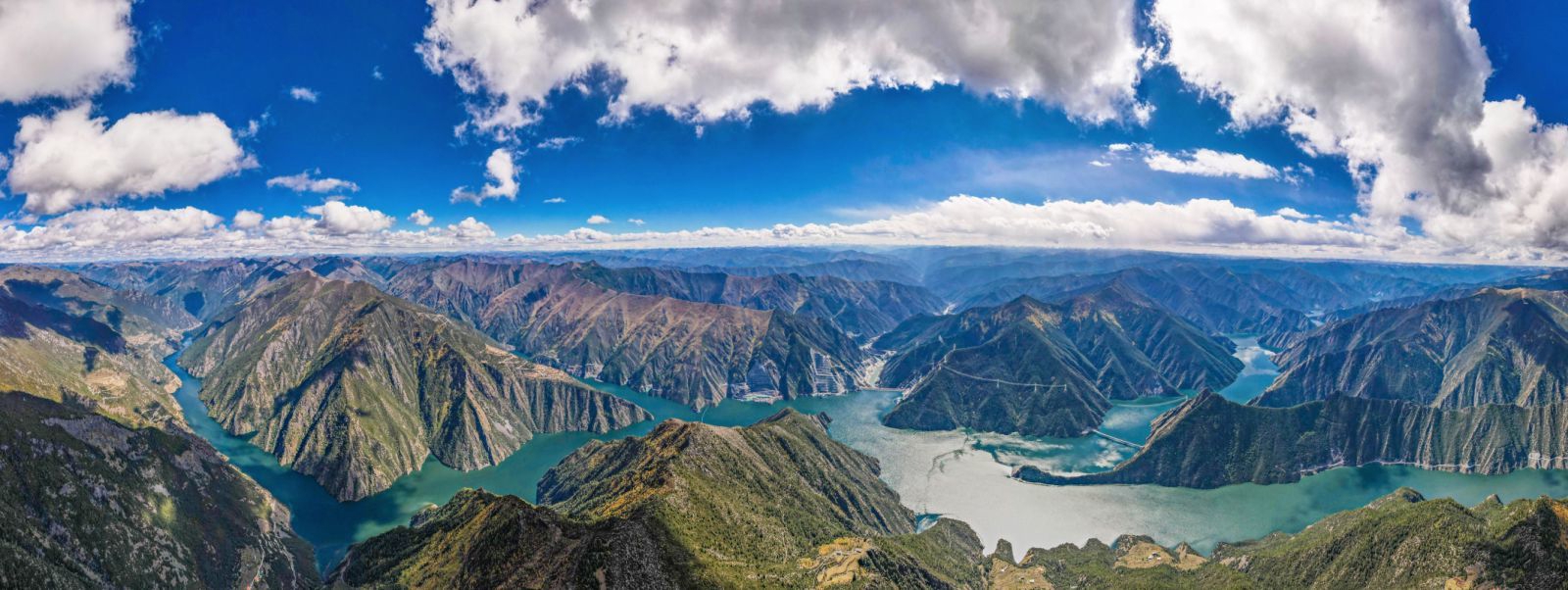 航拍雅砻江两河口水电站。
