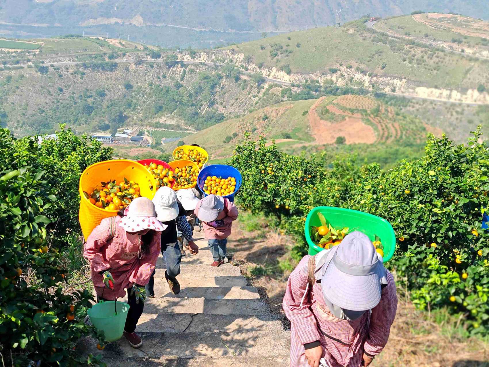 依托优越的自然资源和良好的气候条件,园区根据海拔高度,因地制宜,错峰种植了多个品种的柑橘、橙子,形成了山头植被常绿、橘树错季开花结果的美景。进入园区,品种多样的橘果或绿、或黄、或橙,沉甸甸地挂满枝头,散发出诱人的橘香,令人垂涎欲滴。前来运输柑橘的车辆来来往往,丰收的喜悦弥漫乡间。