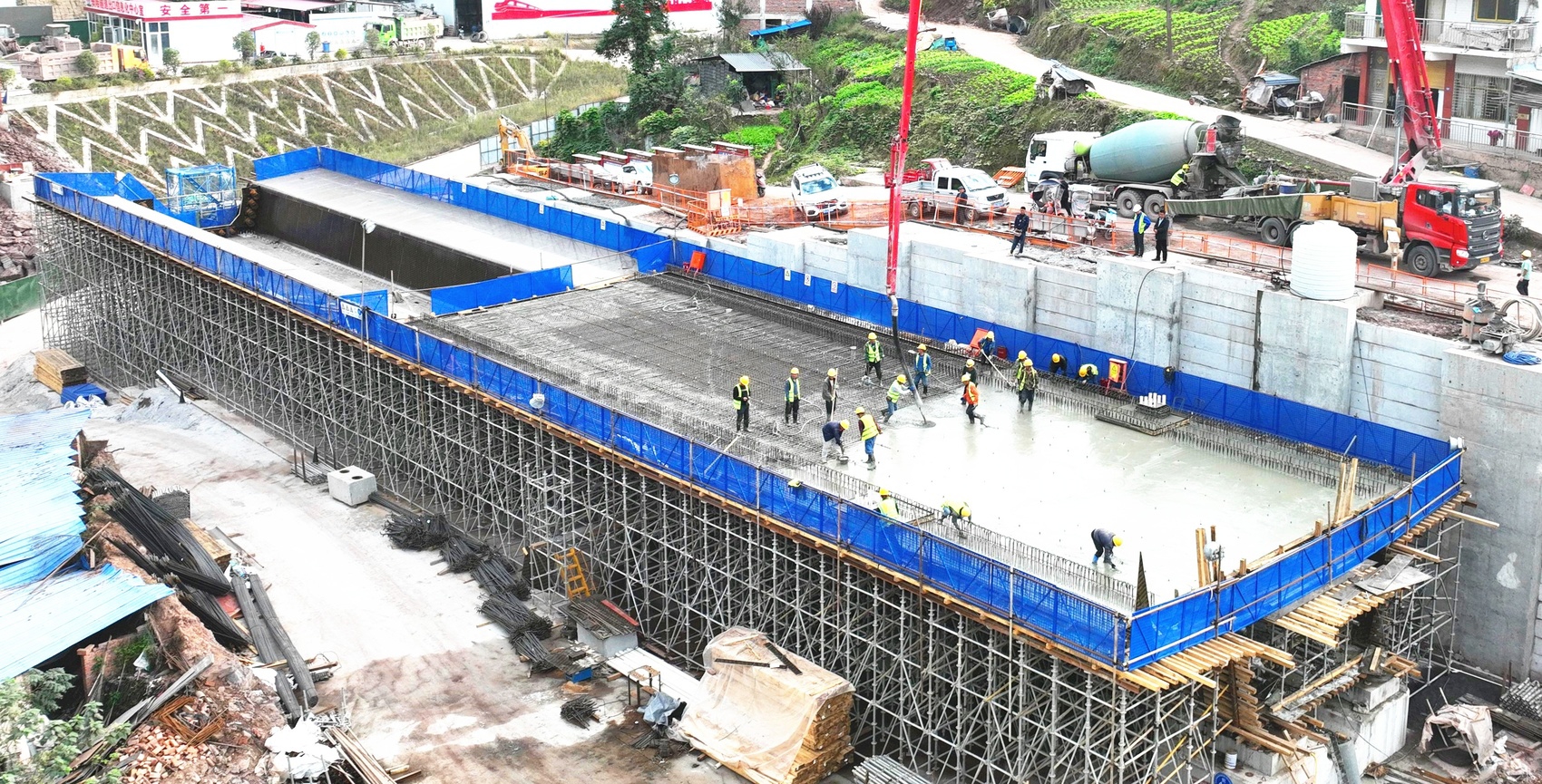 中铁六局西渝高铁康渝项目部有关负责人介绍,樊哙站1号六线特大桥全长917.55米,主要梁体工程量包括1联悬浇连续梁、3联现浇连续梁、44孔支架现浇梁和10孔站台梁。本次浇筑的是3-4号墩32米简支梁,设计浇筑混凝土276立方米。