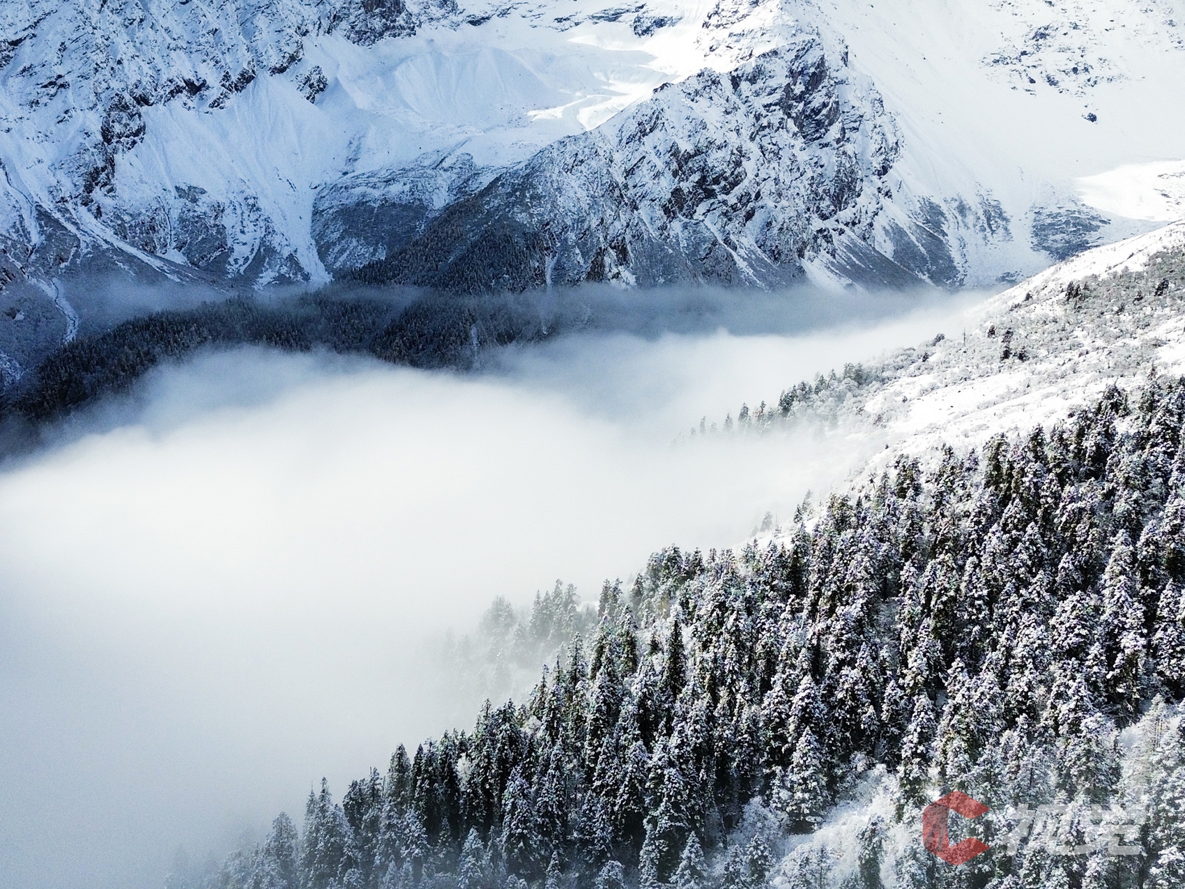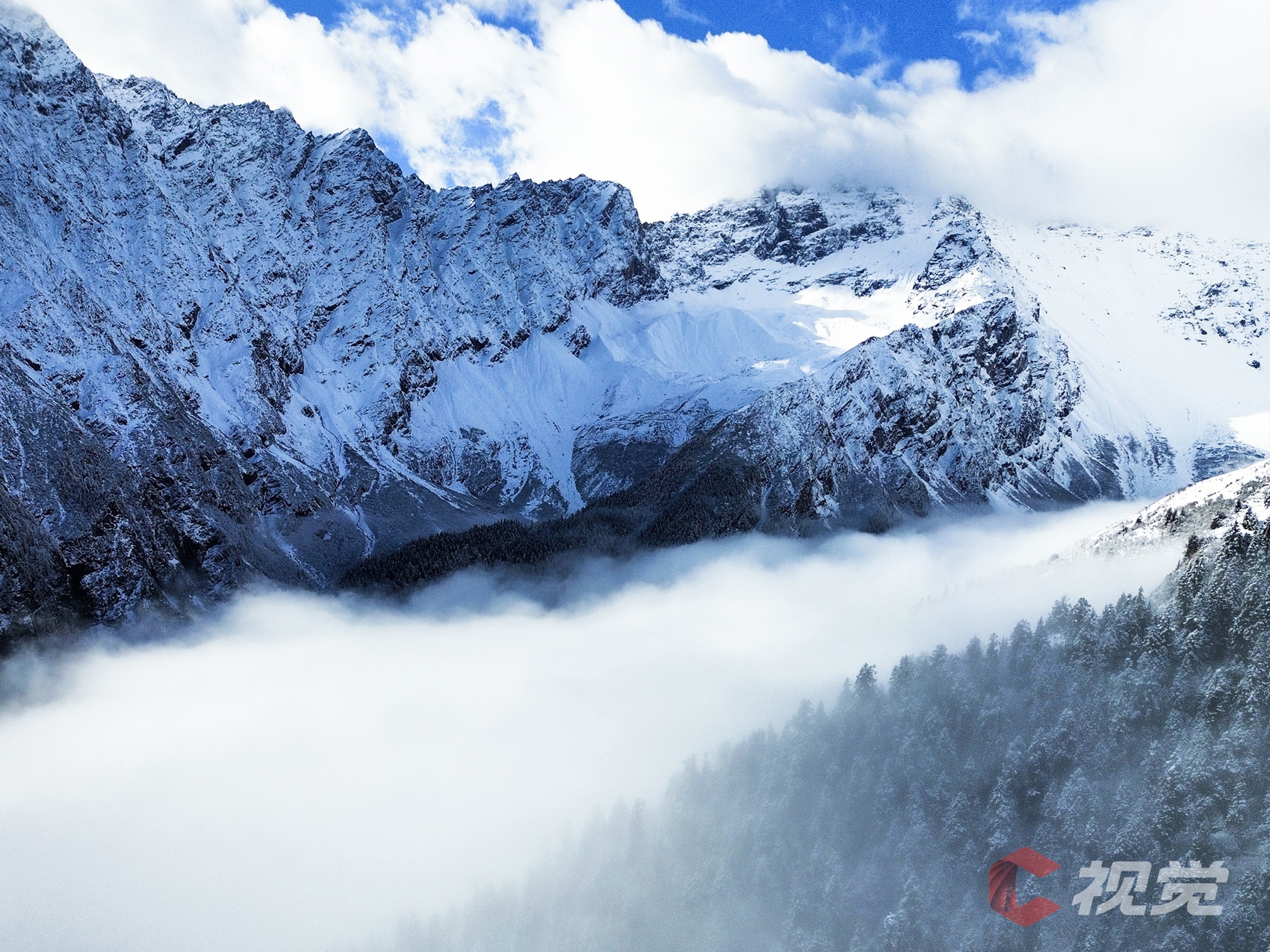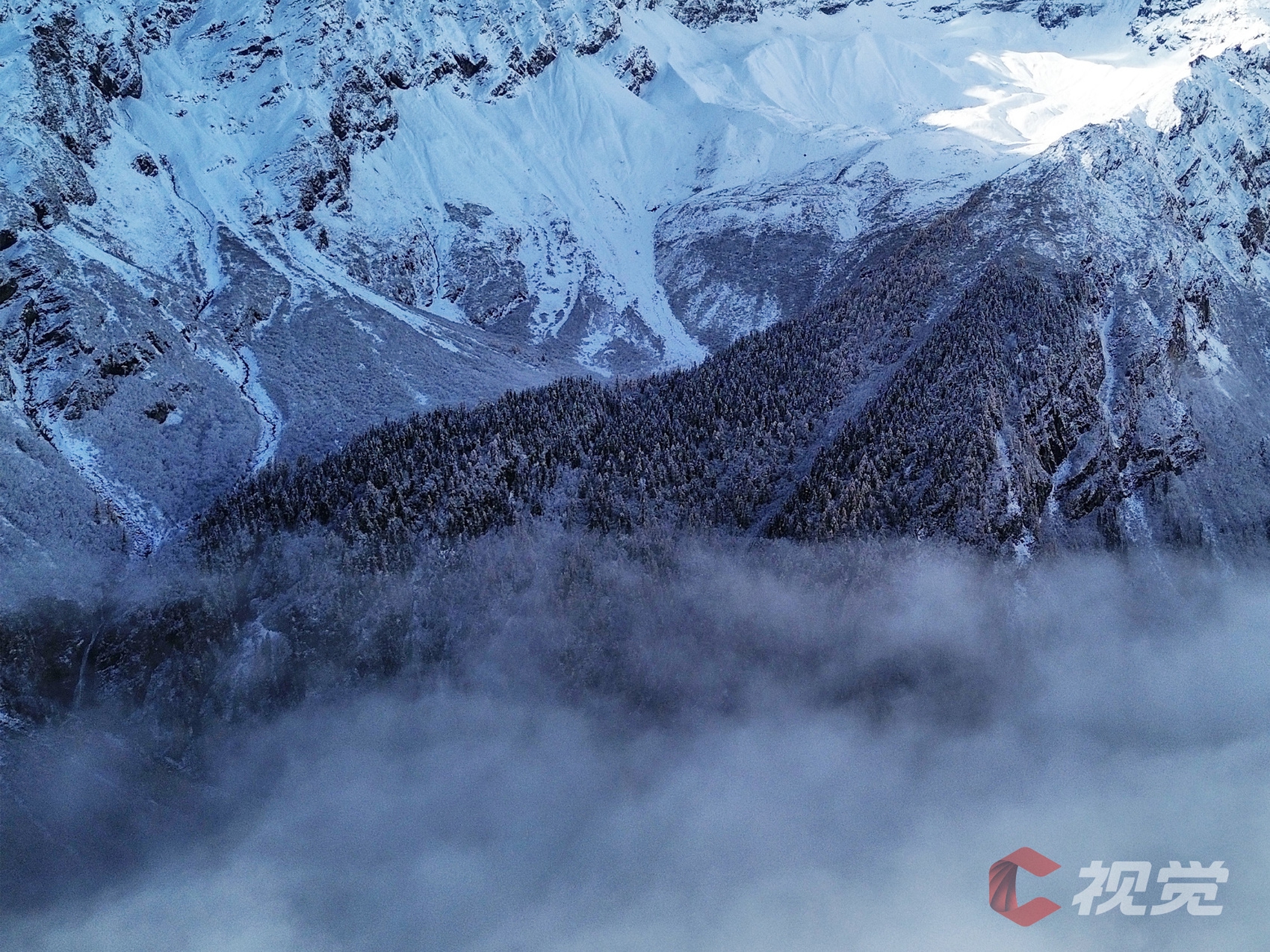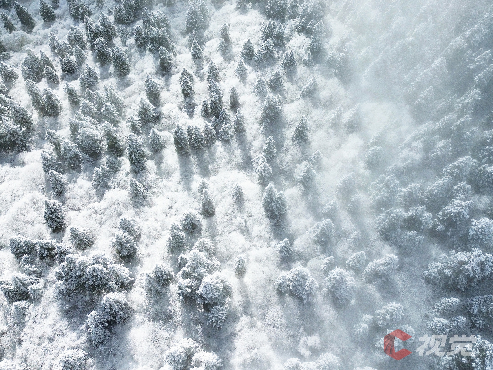 雪后的霸王山,变身洁白的“童话世界”,山间与森林积雪,美不胜收。C视觉摄影师黄禹豪用无人机为我们定格下了一幅幅壮丽的银装画卷。