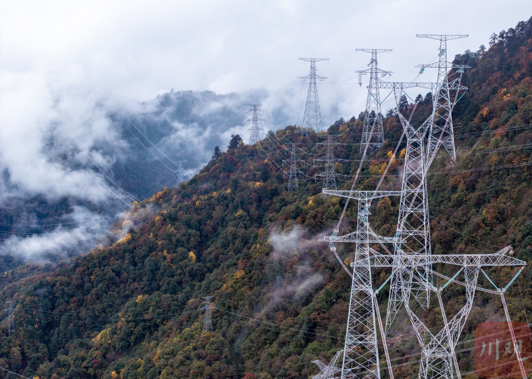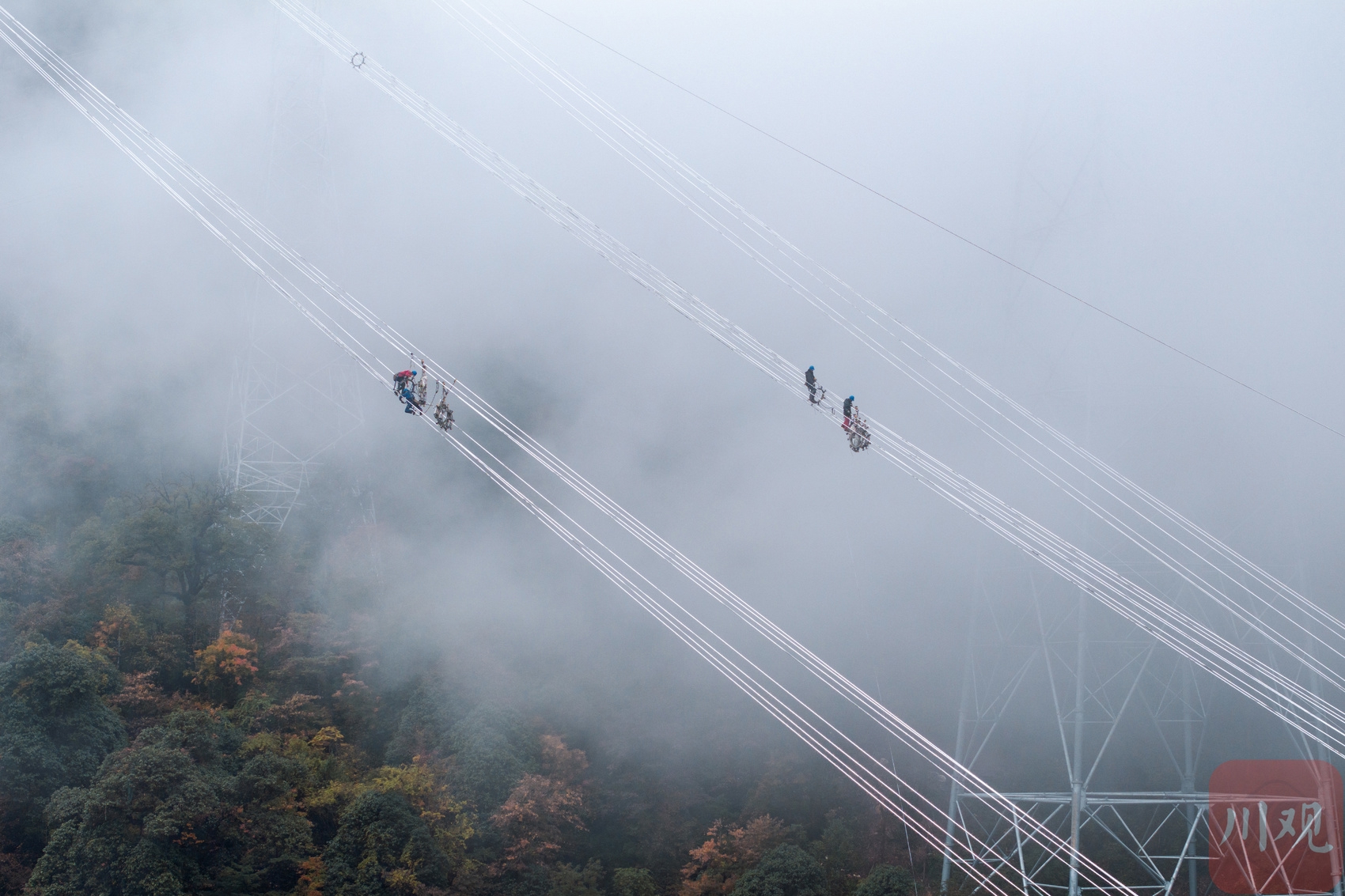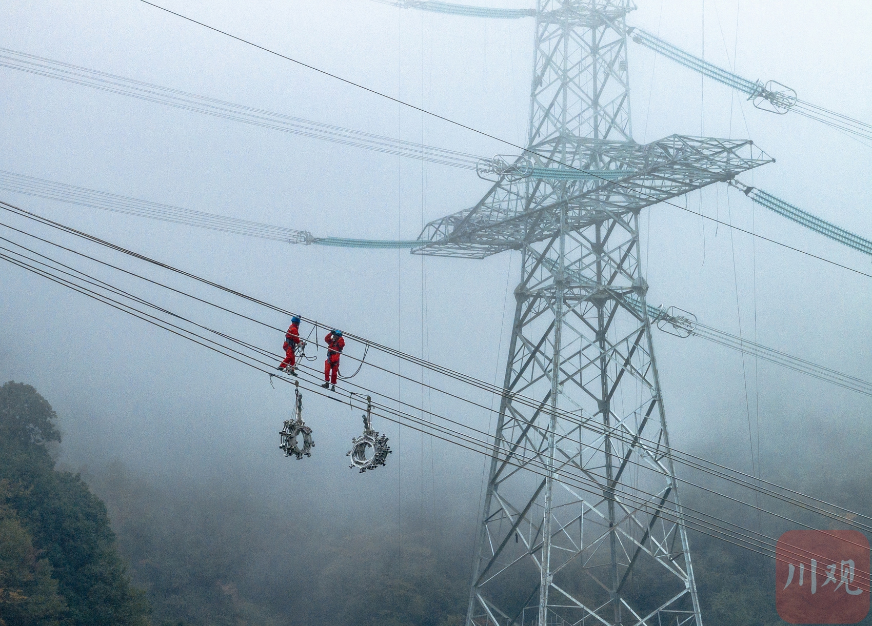 10月27日,甘孜州康定市,川渝1000千伏特高压交流输电工程(简称“川渝特高压工程”)跨越放线施工现场,随着最后1套间隔棒安装完毕,工程顺利完成了超高难度的“十同跨”作业。这意味着整个工程完成了最复杂的放线施工,向工程投运迈出了最关键的一步。