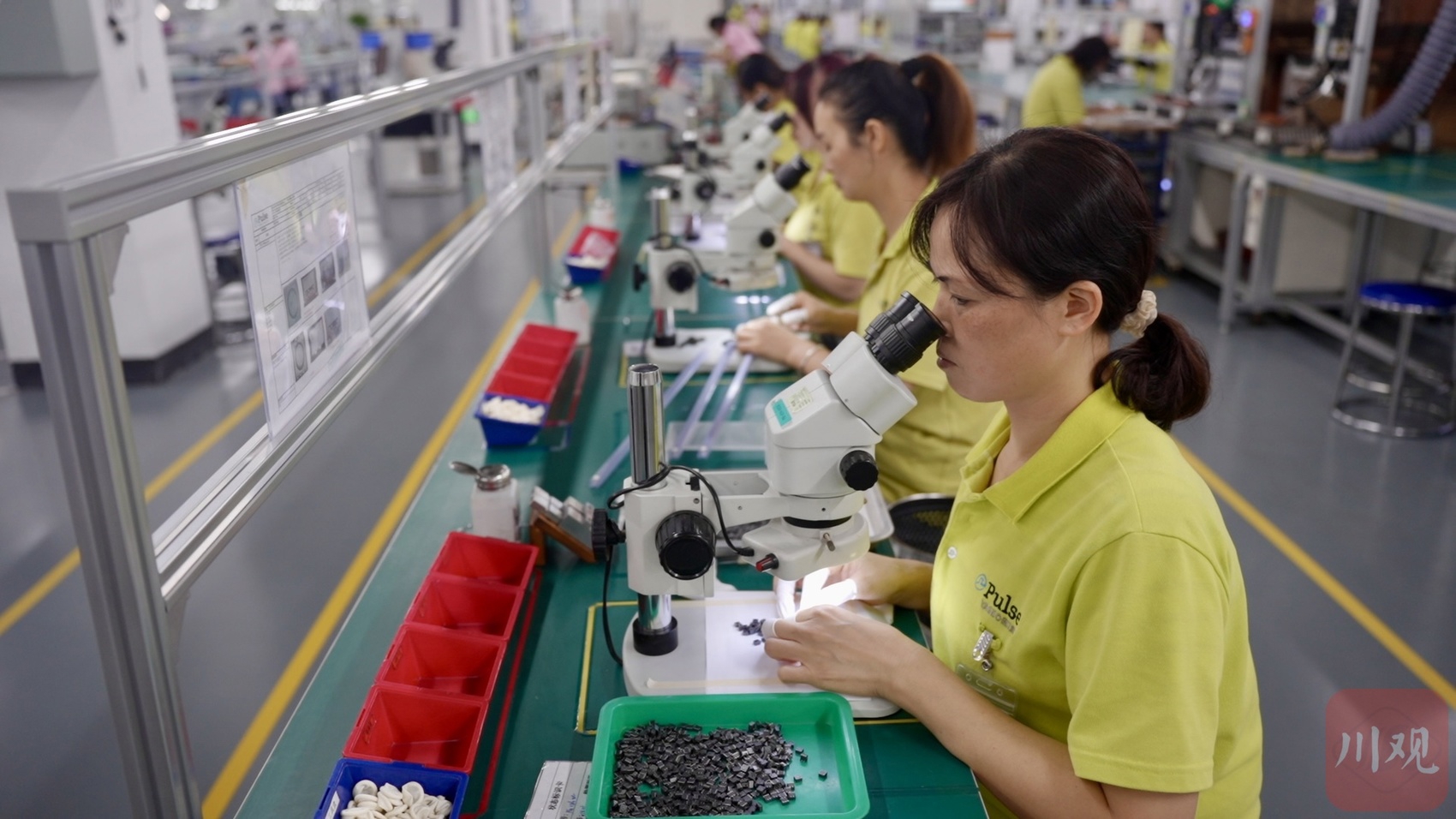 遂宁普思电子有限公司的生产车间,工人们在抓紧生产。遂宁频道 刘作鹏摄