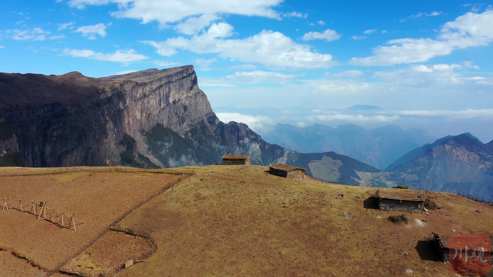 雷波县拉咪乡龙头山大断崖的顶上,村舍依然。