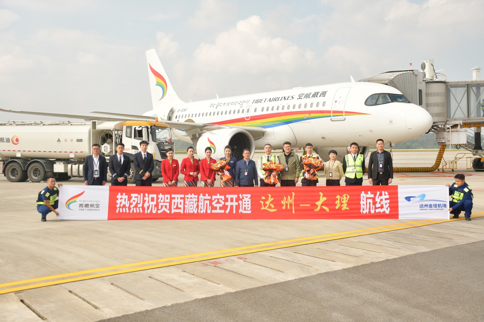 11月2日14时20分,从云南大理起飞的西藏航空TV6005航班抵达达州金垭机场,标志着直飞两地的航线正式开通。