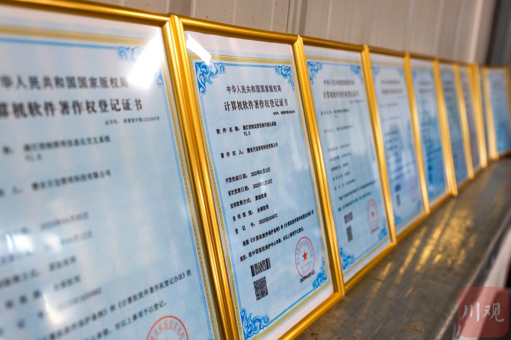 在仅约10平方米的临时办公室内,挂在墙上的近20件实用新型专利证书、计算机软件著作权登记证书,解开了记者的疑惑。“这些是我们这家‘智慧照明’企业的‘灵魂’。”公司总经理余天宝说,雅安金鸡关收费站、宝兴县城功能疏解“大动脉”灵关大道、青鼻山隧道、中国·雅安318自驾大本营等城市干道和地点的路灯照明,都与公司的研发成果有关,“这些灯具已经成为城市智慧治理的信息终端。”