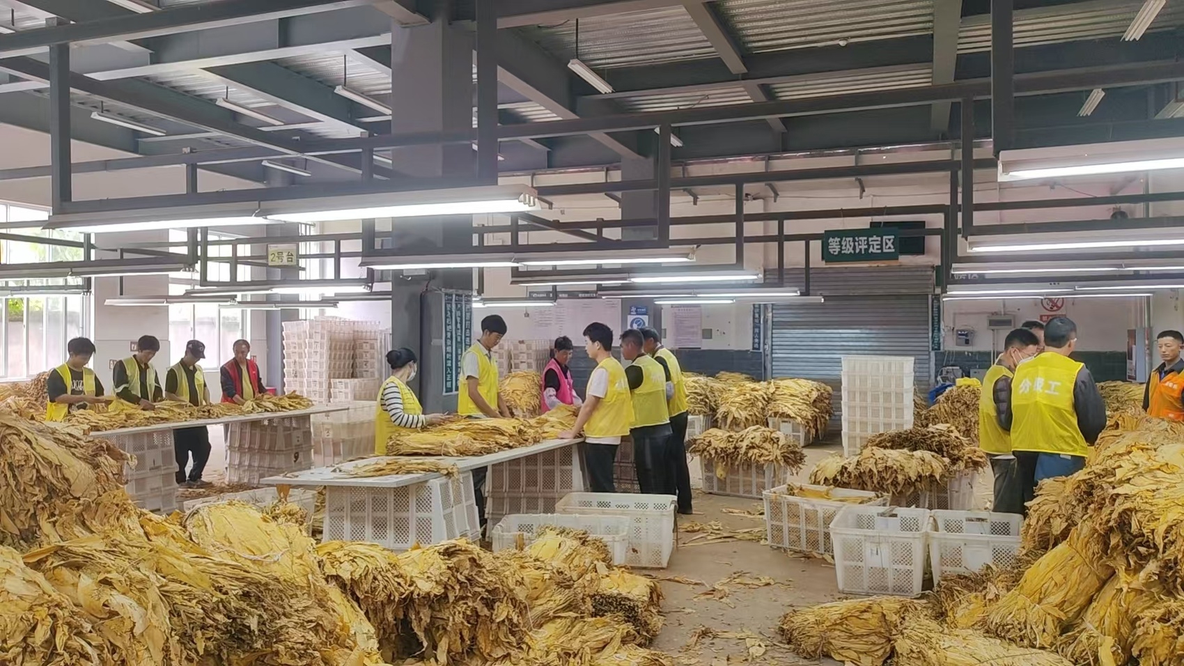 建成后的烤烟租赁站烟叶收购现场。