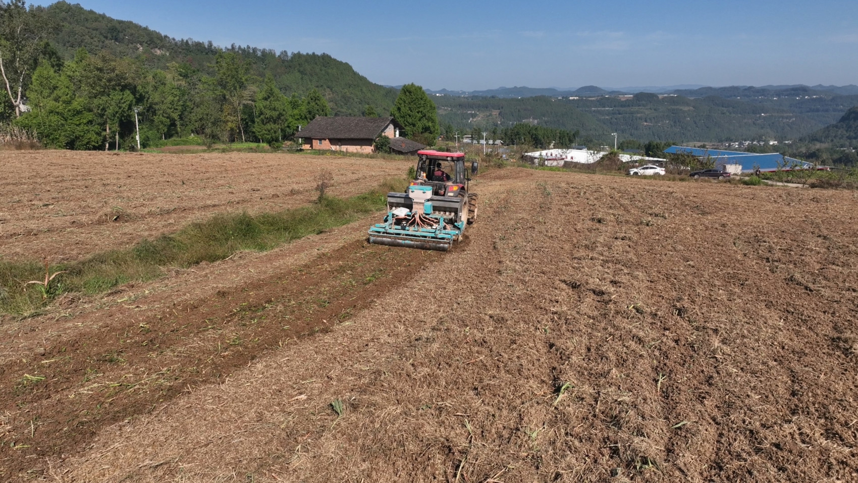 秋高气爽,眼下正是小麦秋播秋种的忙碌时节。11月5日,在巴中市平昌县元山镇插旗山村,旋耕机、智能精播机等机械设备接连运转,农资倒运、麦种、肥料撒播等步骤依次铺开,一幅绚丽的画卷在田间地头呈现。