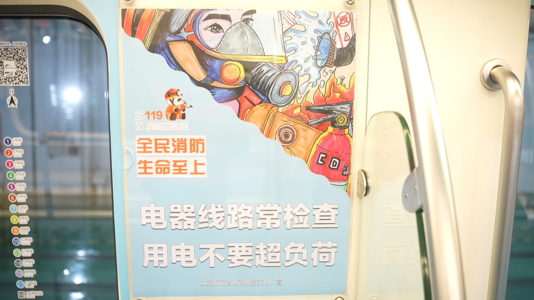 据悉,“119号”主题列车将在成都地铁1号线持续运行三个月,乘客可在成都地铁APP首页点击“列车位置”,选择1号线,查看“119号”主题列车具体运行位置。