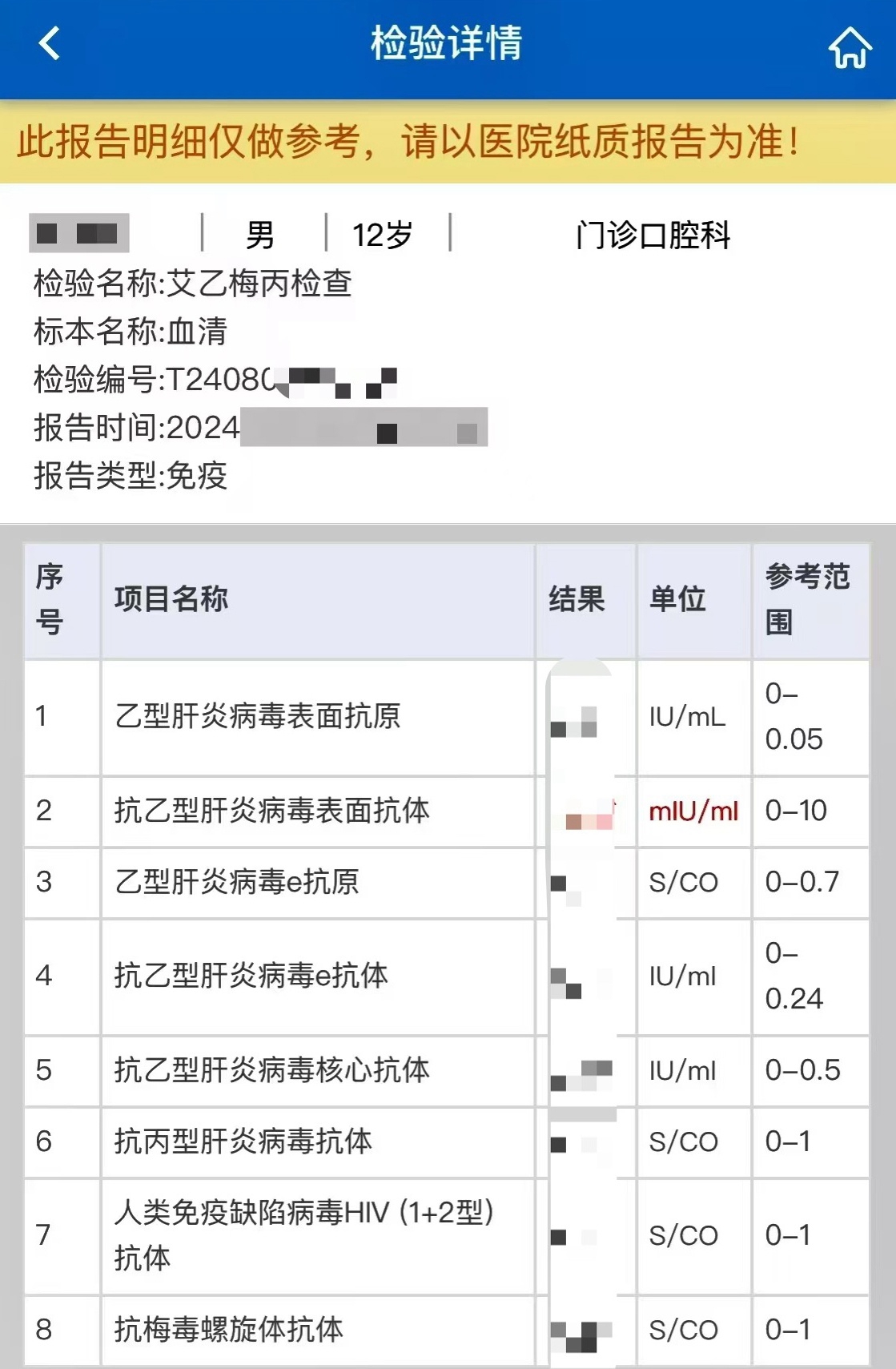 史先生缴费后,带着孩子去做了相应检查。过了几天,史先生在医院APP上查询检查报告时发现,医生开具的检查项目中,有一项是“艾乙梅丙”检查。“乙肝、丙肝这类传染病检查我还能接受,但是对于一个只有12岁的未成年,我们父母也没啥传染病,为啥要查艾滋病和梅毒?而且在开具这些检查之前也没有告知我们。”史先生告诉记者,他就相关问题向医院投诉过,但没有得到反馈。