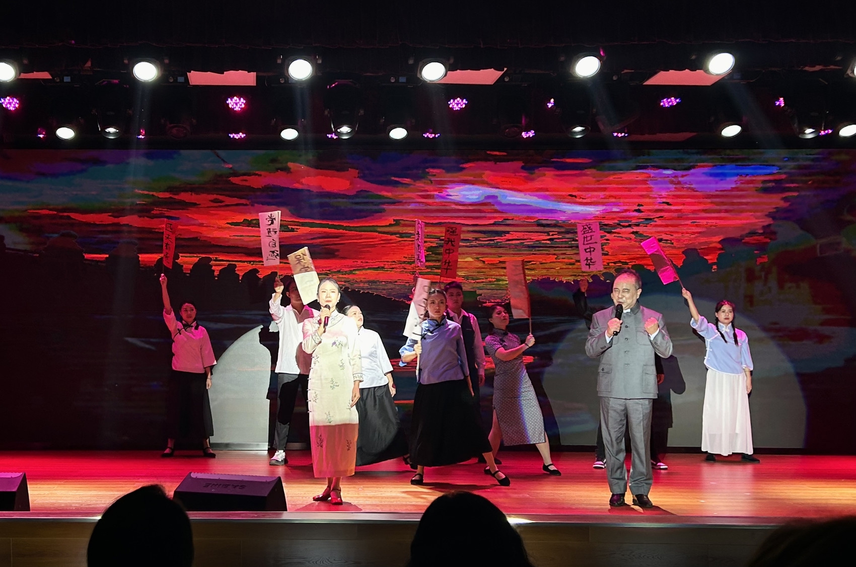活动以《江姐之歌》为序章,通过歌舞、器乐、朗诵等不同表演形式,从又唱红梅赞、奋进感党恩、阔步新时代三个篇章9个节目,舞台上,情景朗诵《歌声》、歌舞《好儿好女好江山》、舞蹈《我心中的红色记忆》、独唱《又唱红梅赞》、合唱《和你一样》等节目轮番上演,最后一曲激昂的大合唱《红梅赞》旋律再次响起,瞬间点燃现场观众的热情,激发起全体人员的家国情怀和奋斗精神。