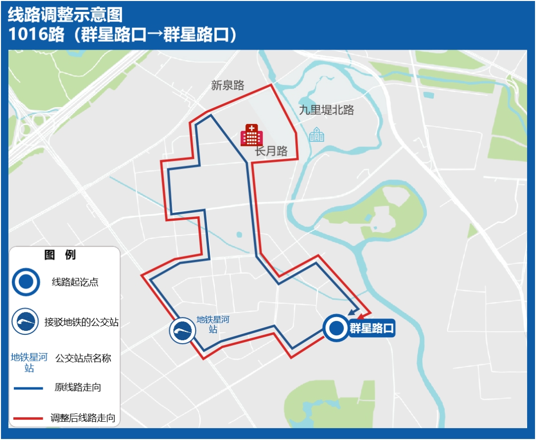 为强化新泉路、长月路及电建洺悦府公交服务薄弱区域覆盖,拟调整1016路线路走向,满足九里片区沿途市民通勤、通学、就医、购物等出行需求。