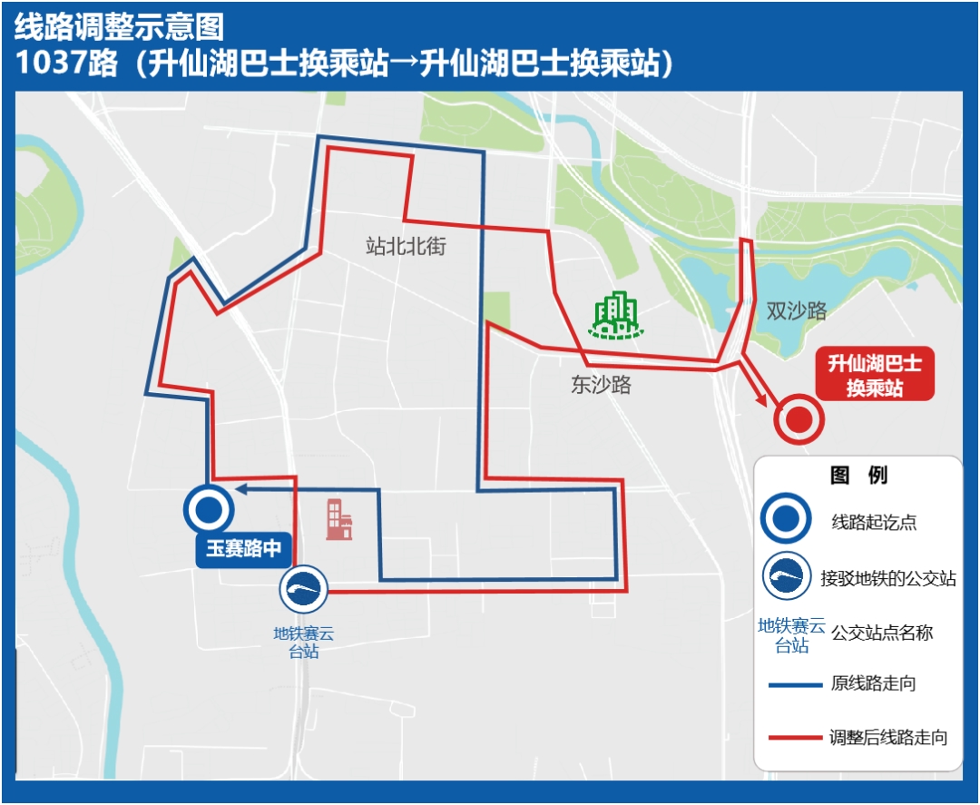为方便五块石片区市民前往地铁1号线、5号线换乘,拟将1037路起讫点调整为升仙湖巴士换乘站—升仙湖巴士换乘站,满足沿途市民通勤、通学出行需求。