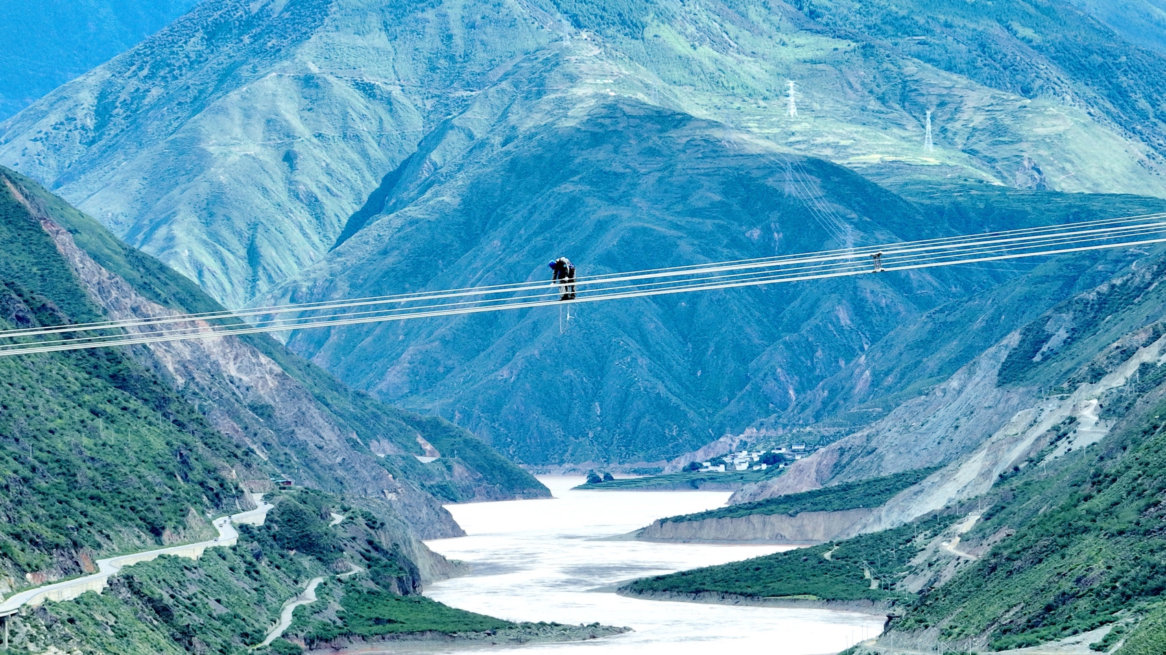 川藏联网年度检修现场,电力工人正在走线检查。李晨萌 摄