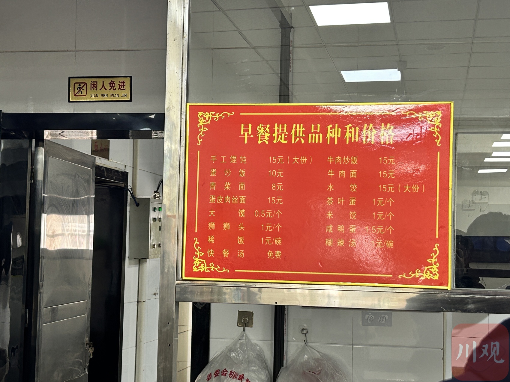舒城县政府大院机关食堂对外开放,食堂内贴有早餐价目表。 熊晓雨 摄