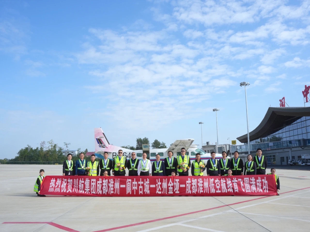 10月23日,一架赛斯纳208B型飞机从成都起飞,经过1小时飞行后,平稳降落在阆中机场,短暂停留后又飞往达州,实现“成都—阆中—达州”低空短途运输航线首飞。
