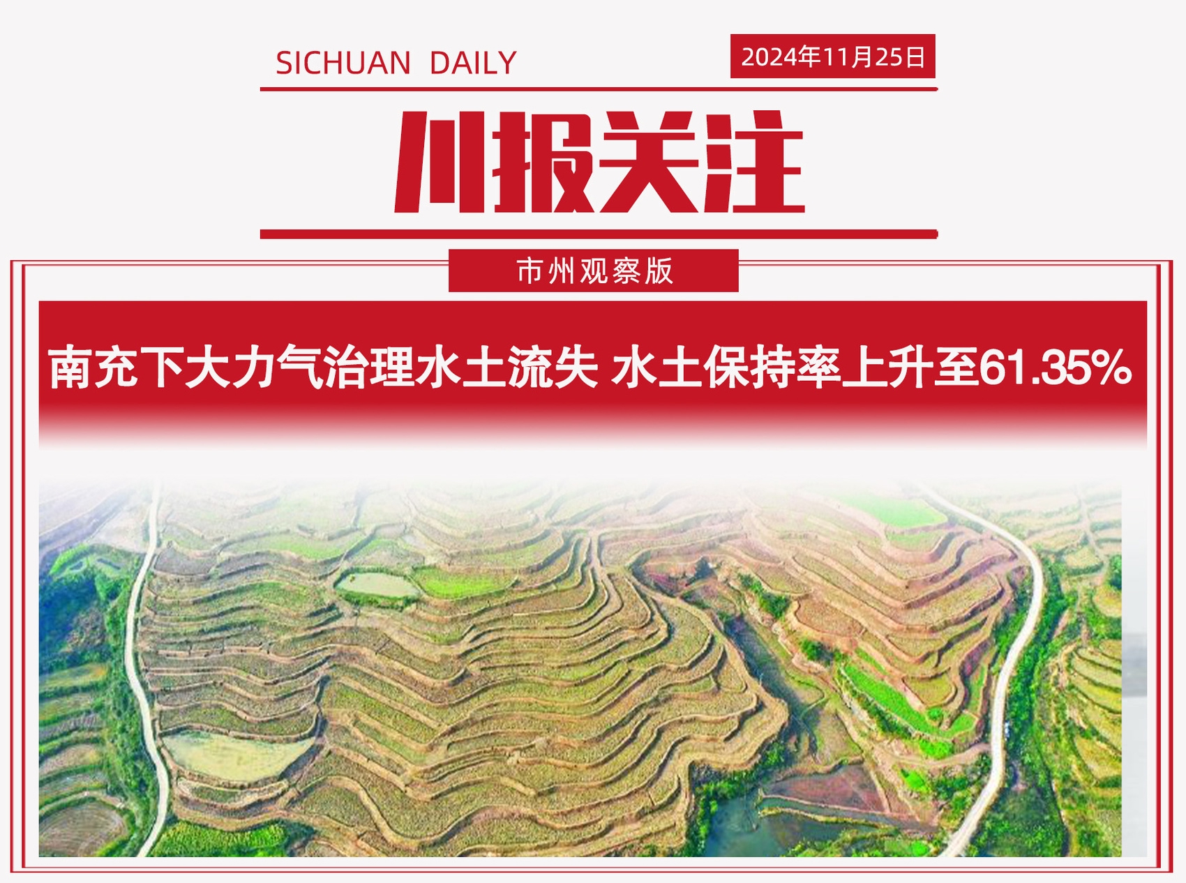 据统计,2020年以来,南充市水土流失综合治理面积已达870.42平方千米,全市水土流失面积、强度实现“双下降”,水土保持率由2020年的58.86%上升至2023年的61.35%。