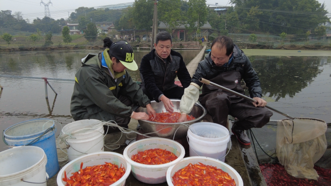 12月4日一大早,自贡市大安区团结镇土柱村,3组村民邱利彬和妻子就开始忙碌起来。两人将鱼饵饲料撒入观赏鱼基地,用网篓从鱼塘中网起一篼又一篼活蹦乱跳的红色锦鲤鱼苗。“灯杆坝一观赏鱼商户一次性下单了200斤,要选个头匀称,颜色纯度高的鱼苗。”邱利彬告诉记者,这200斤按照每斤30元,今天就可以收入6000元。