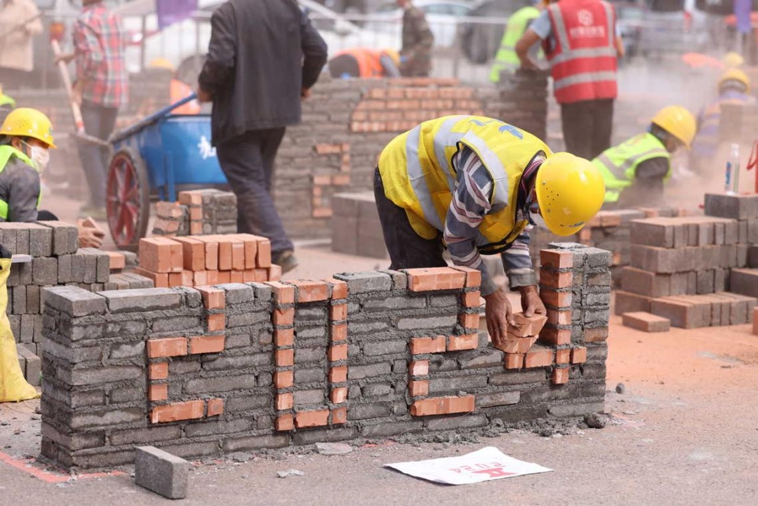 泸州市举行的建筑砌筑工技能比赛现场。(泸州市总工会供图)