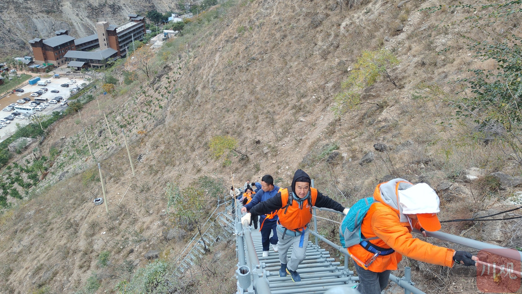 本次悬崖村钢梯勇敢者攀登活动为单向(向上)攀登挑战,全长1.5公里(含925米钢梯、前后路段各300米土路),最大落差梯段接近90度垂直。活动不分排名,以顺利完赛打卡为完成标志。