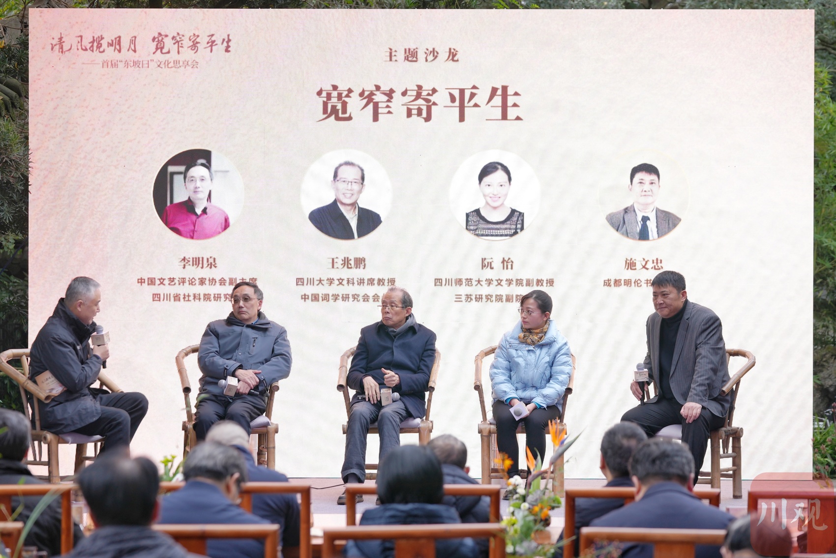 12月11日下午,首届“东坡曰”文化思享会在眉山三苏祠博物馆举行,中国文艺评论家协会副主席、四川省社科院二级研究员李明泉,中国词学研究会会长、四川大学文科讲席教授、中南民族大学二级教授王兆鹏,四川师范大学三苏研究院副院长阮怡,成都明伦书院院长施文忠围绕“宽窄寄平生”话题展开交流,共同解读苏东坡的人生哲学。