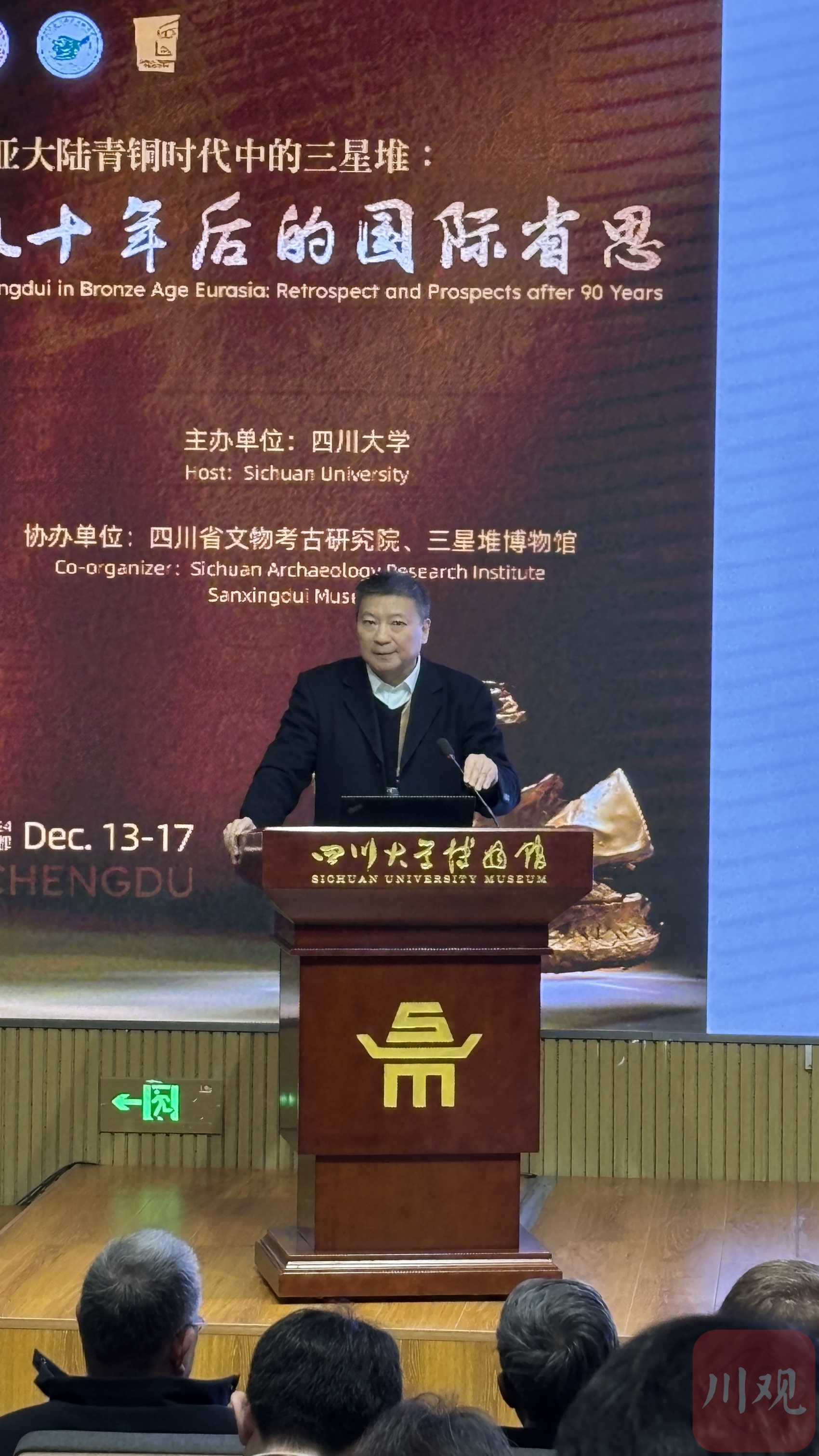 12月13日至17日,由四川大学主办、四川省文物考古研究院、三星堆博物馆协办的“欧亚大陆青铜时代中的三星堆:九十年后的国际省思”国际学术研讨会在四川大学博物馆举行。来自中国、美国、法国、新西兰等国家的22位学者围绕三星堆技术、艺术、资源、信仰等一系列话题展开深入的分享和讨论。研讨会上,四川大学历史文化学院院长霍巍就“三星堆早期发掘与中国早期考古学”这一话题展开分享,深入探讨了九十年来三星堆发掘对中国考古的作用和意义。