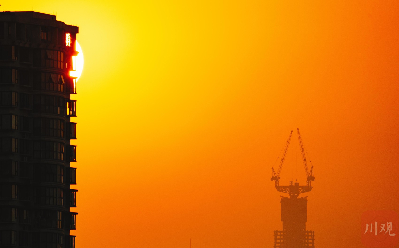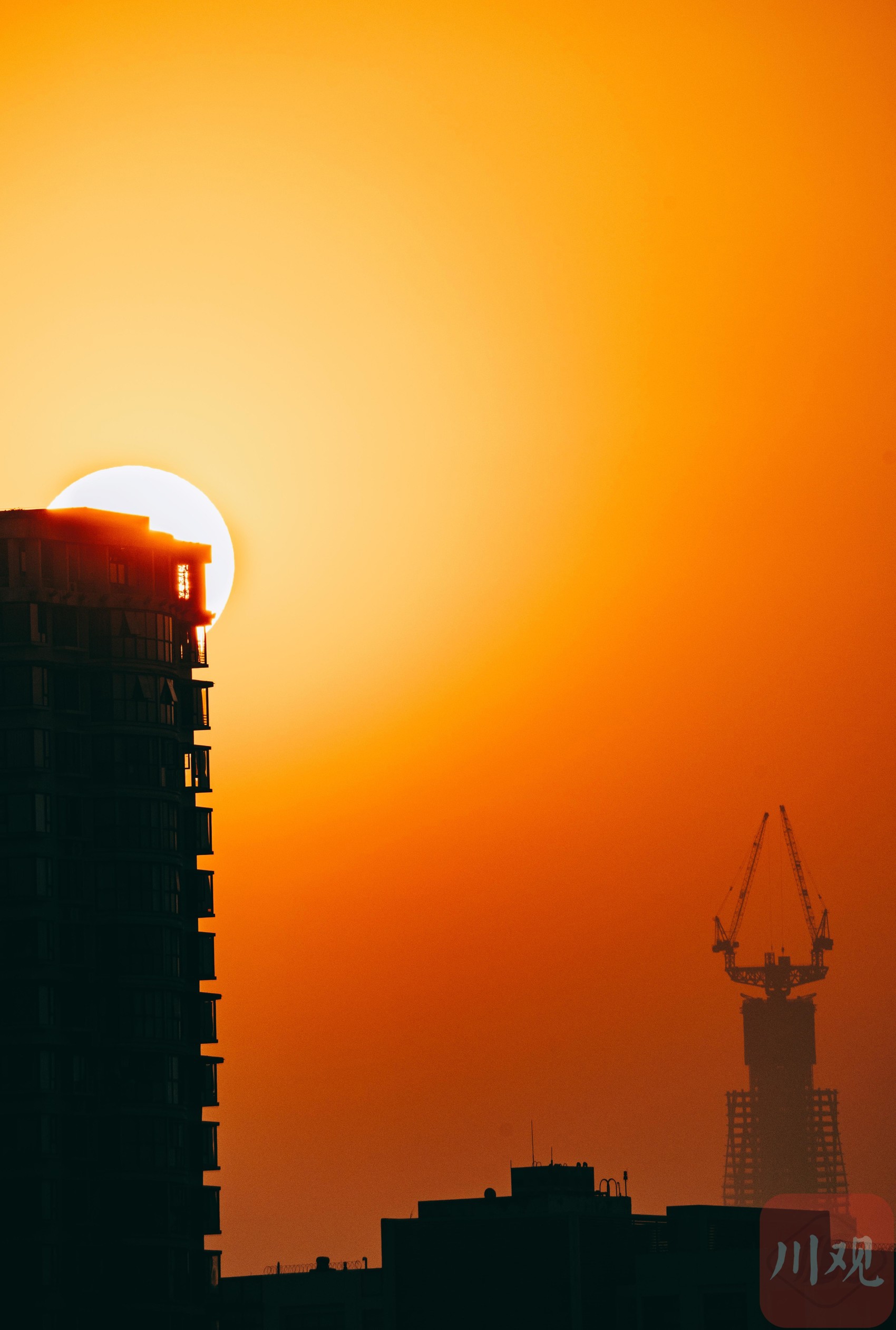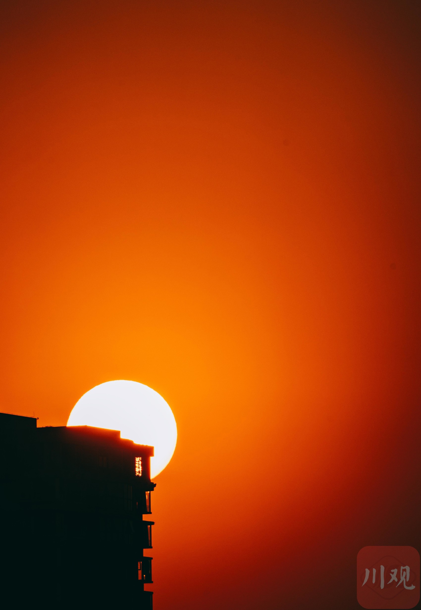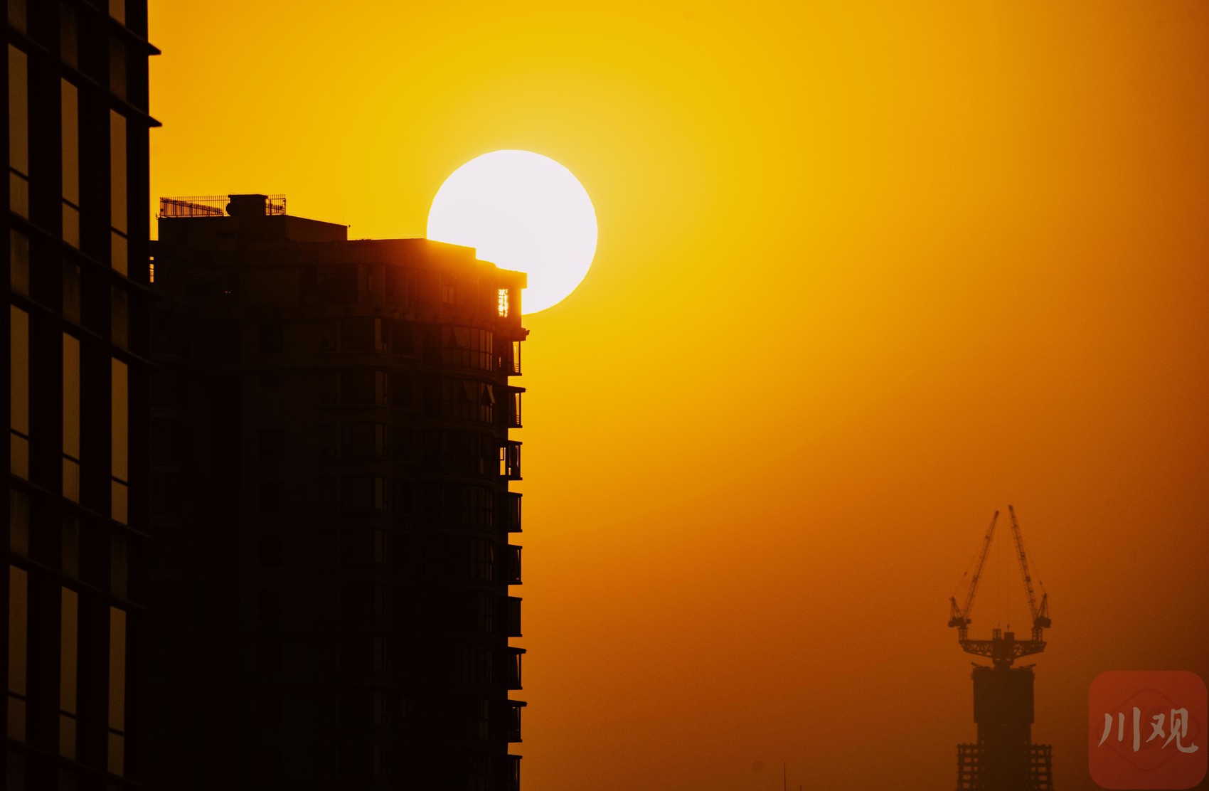 12月16日清晨7时许,成都,皎洁的圆月还高挂在城市西北方向空中,同时,一轮红日已从城市东方冉冉升起。日月同辉的景象给冬日的城市凭添一道色彩。
