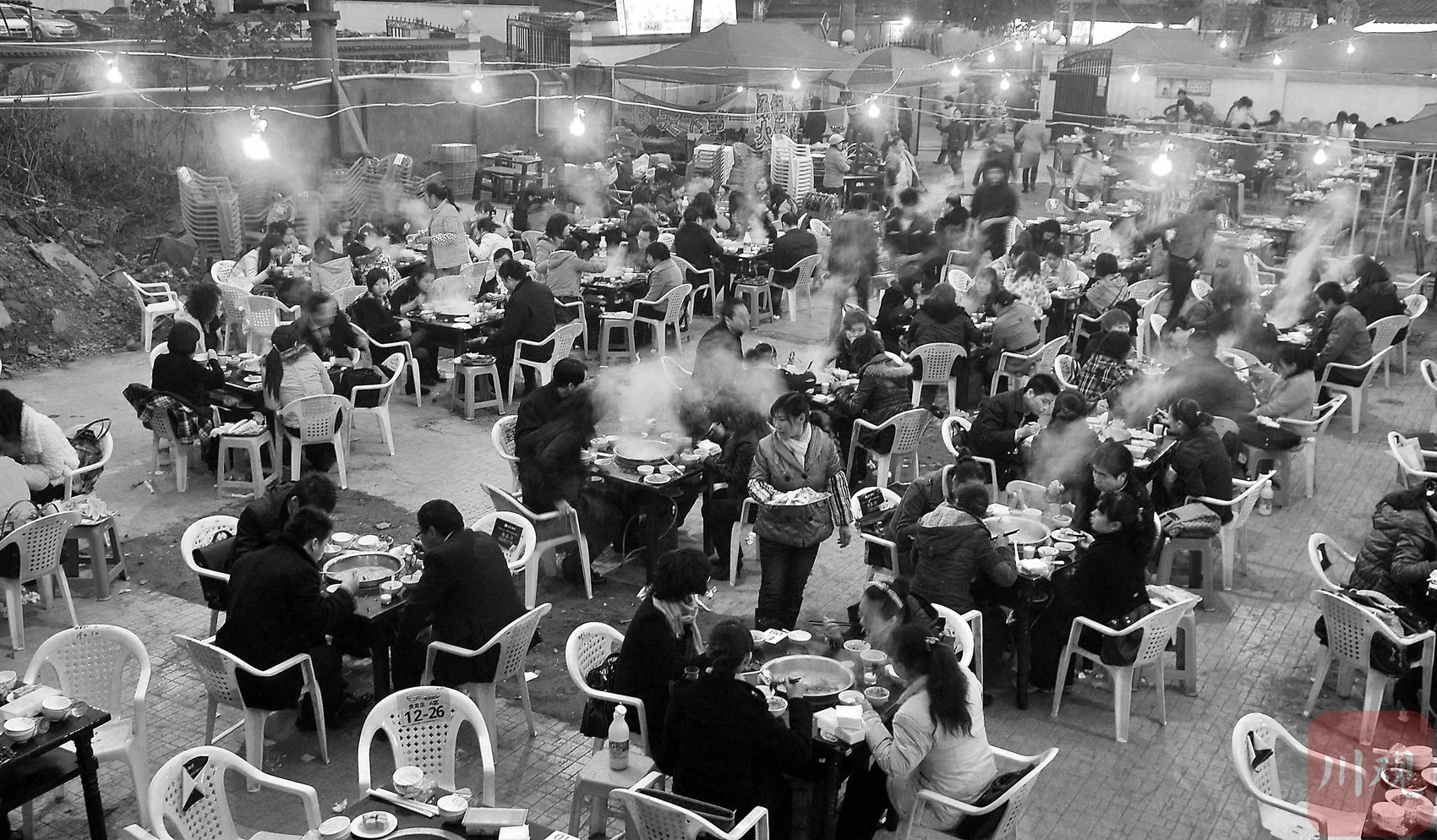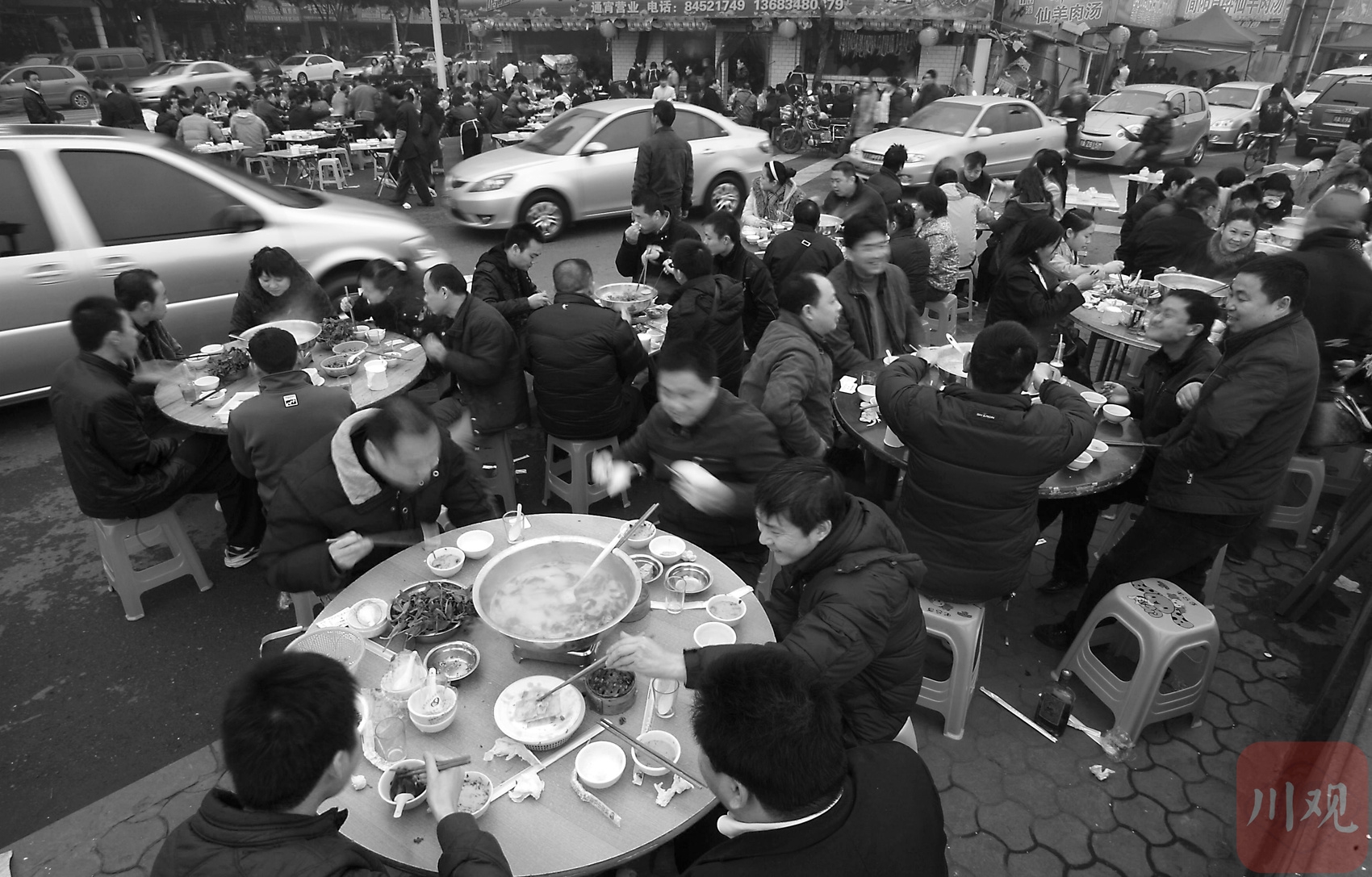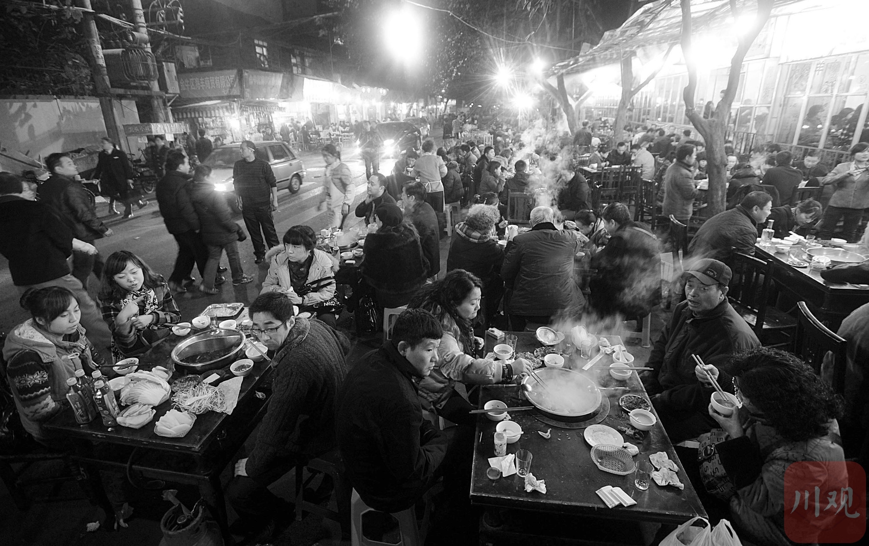 2010年冬至,市民在成都市小关庙街吃羊肉汤锅的盛况。
