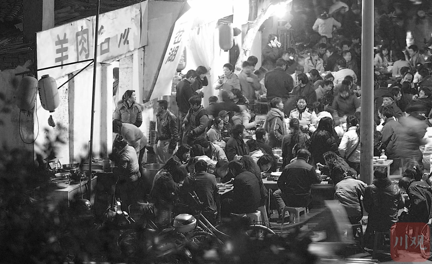 2009年冬至,市民在成都市小关庙街吃羊肉汤锅的盛况。