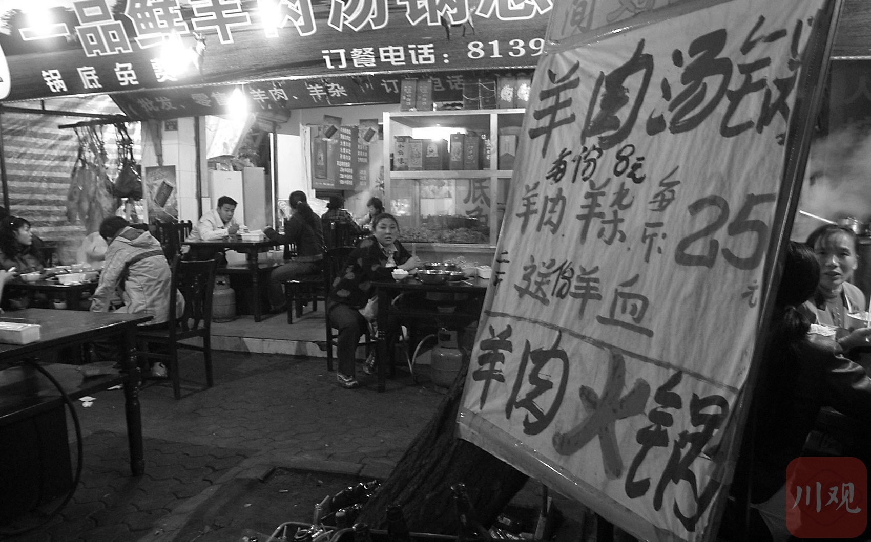 2009年冬至,市民在望江楼对岸的三官堂街边吃羊肉汤锅。