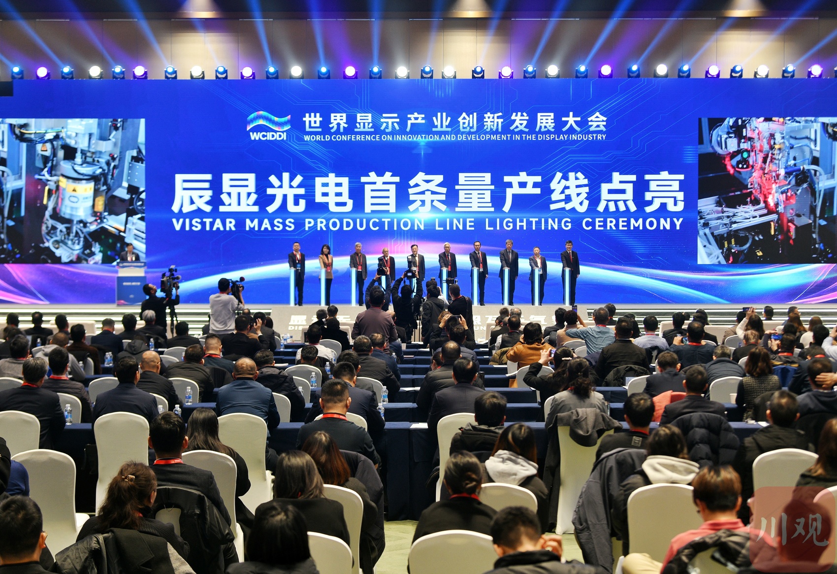 12月19日上午,位于成都高新西区的成都辰显光电有限公司,技术人员正在对TFT基Micro-LED量产线进行最后检查。实时的画面,同步出现在成都天府国际会议中心大屏幕——世界显示产业创新发展大会开幕式现场。