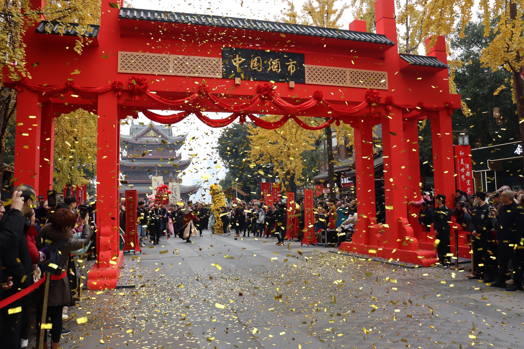 12月18日上午,宜宾冠英古街,在长江纤夫的川江号子中,红绸落下,宜宾新的文化地标“中国酒市”正式开市。