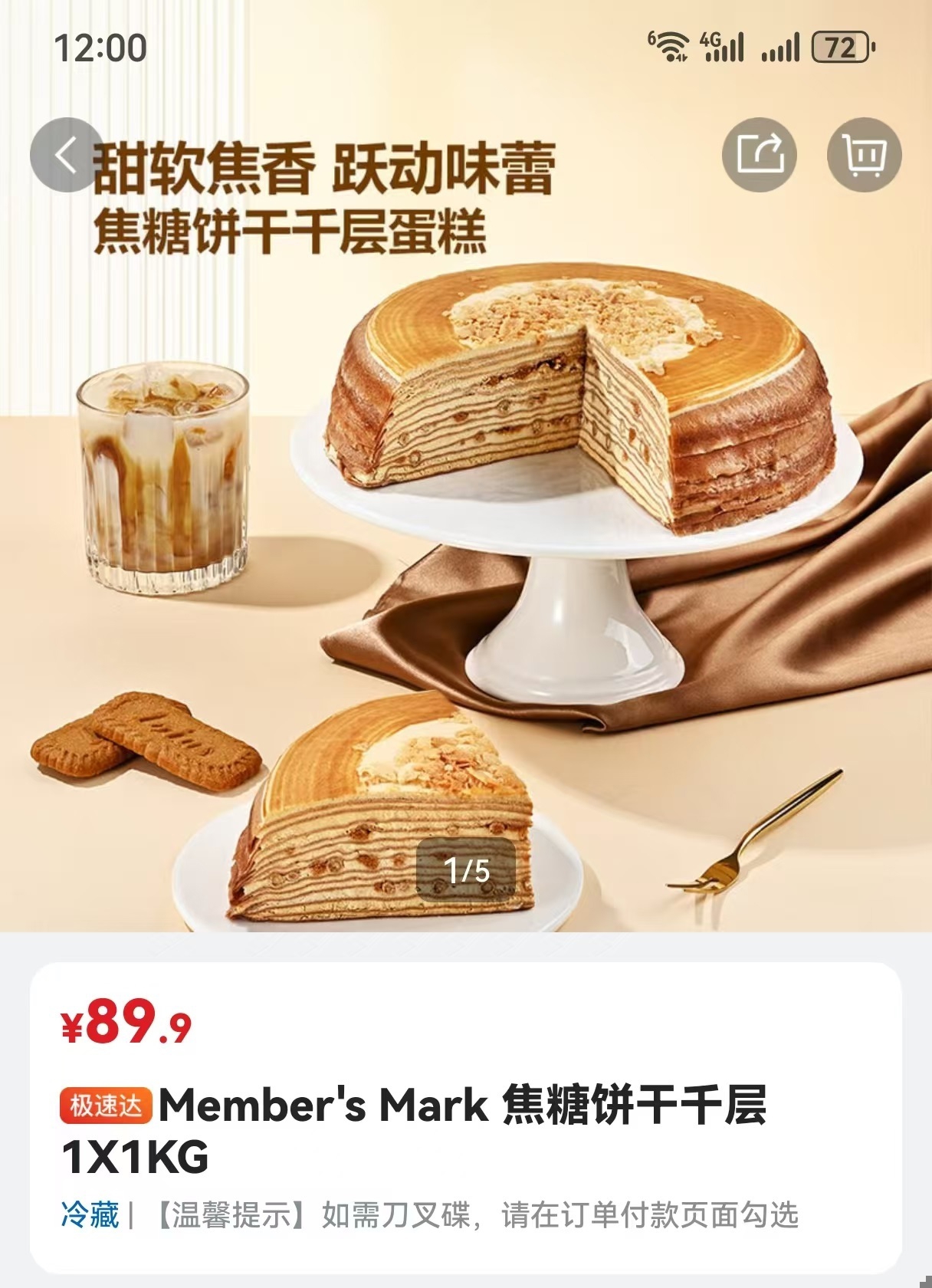 查询山姆App,可以发现拍摄的照片和山姆在售商品“焦糖饼干千层”十分相似。