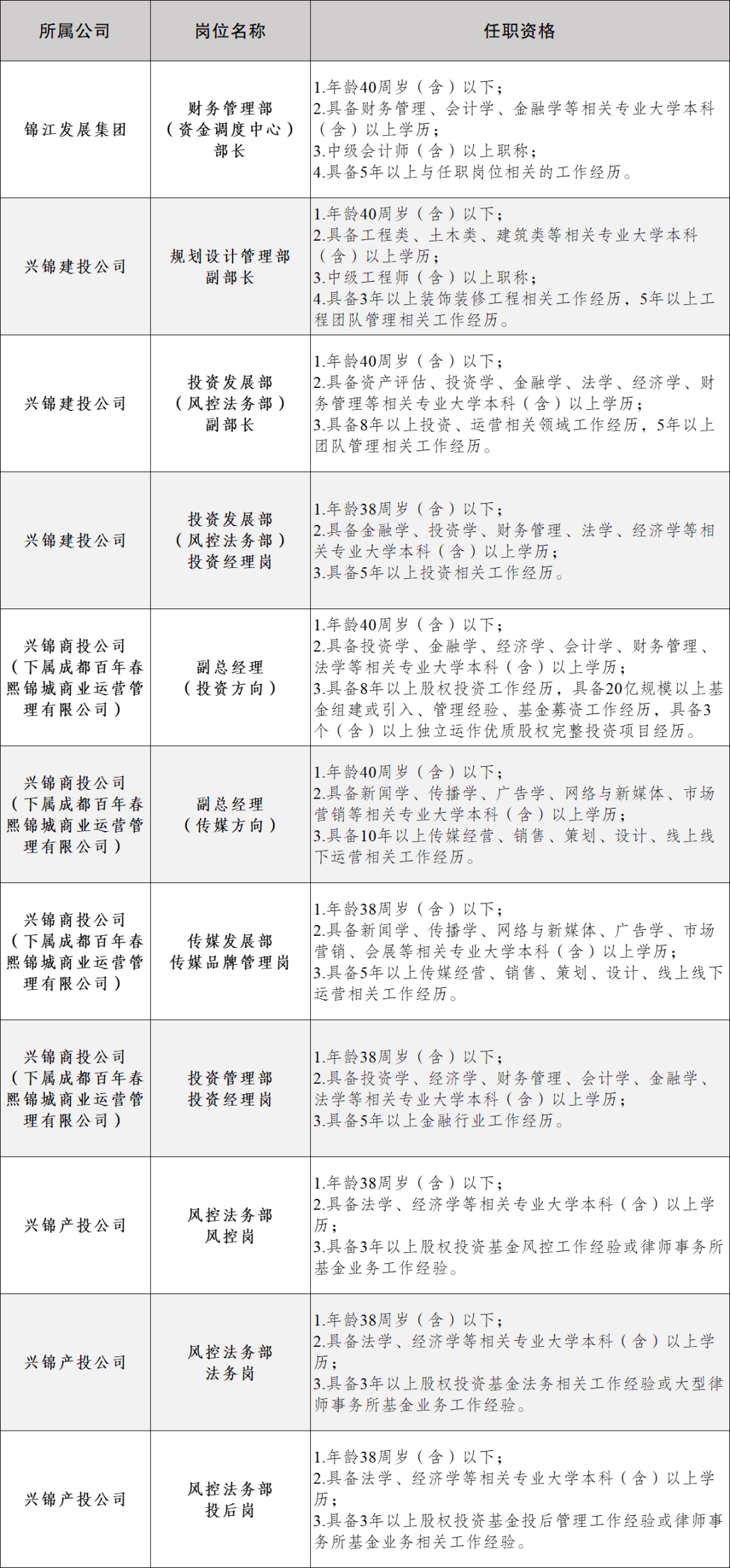 (1)《成都市锦江投资发展集团有限责任公司公开招聘报名表》(段末附件2);